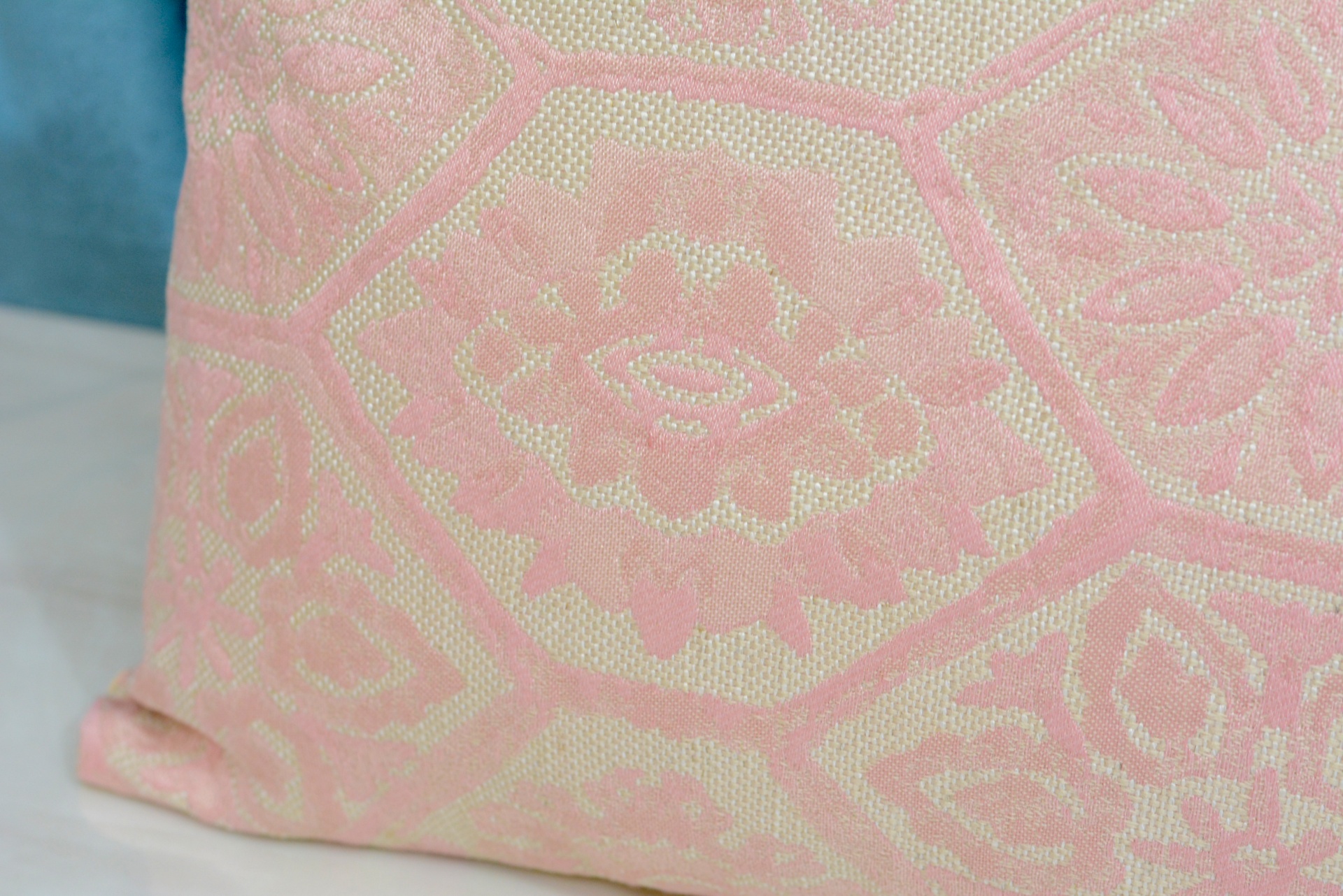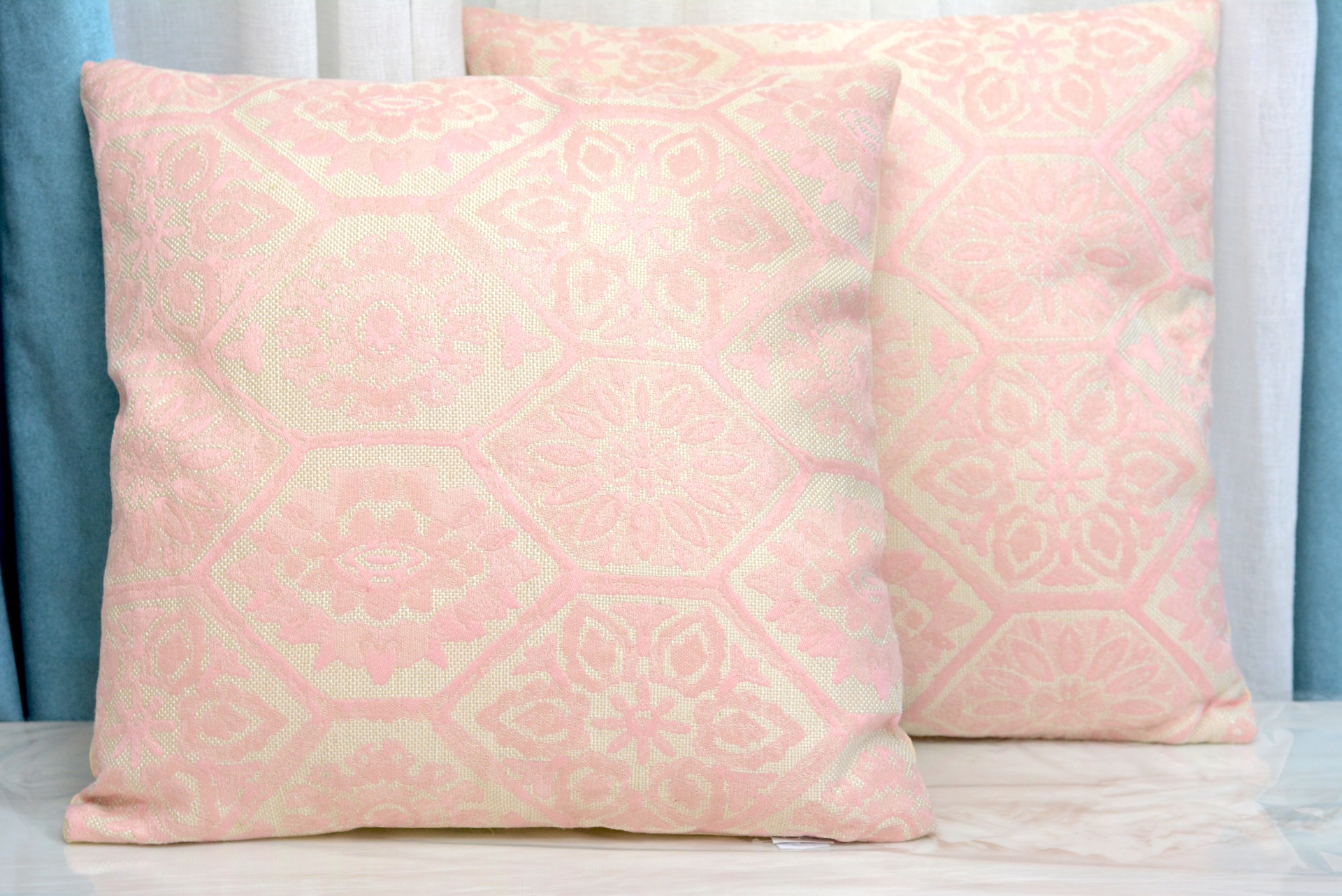 Conjunto de Almofadas Decorativas c/ Design nos Tons Rosas e Beges.