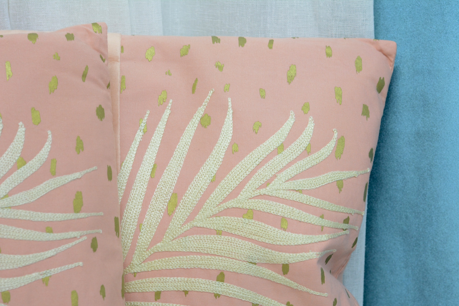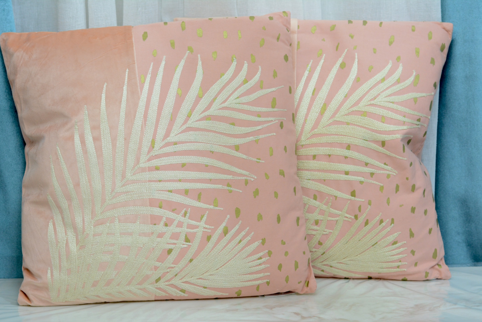 Conjunto de Almofadas Decorativas c/ Design nos Tons Rosas e Dourados.