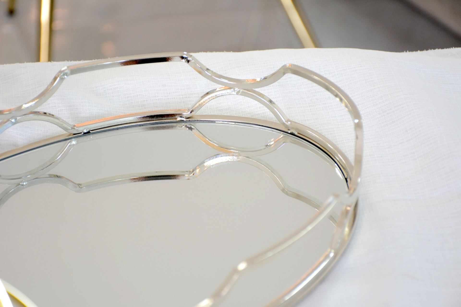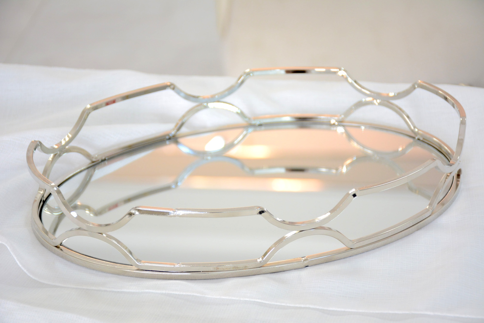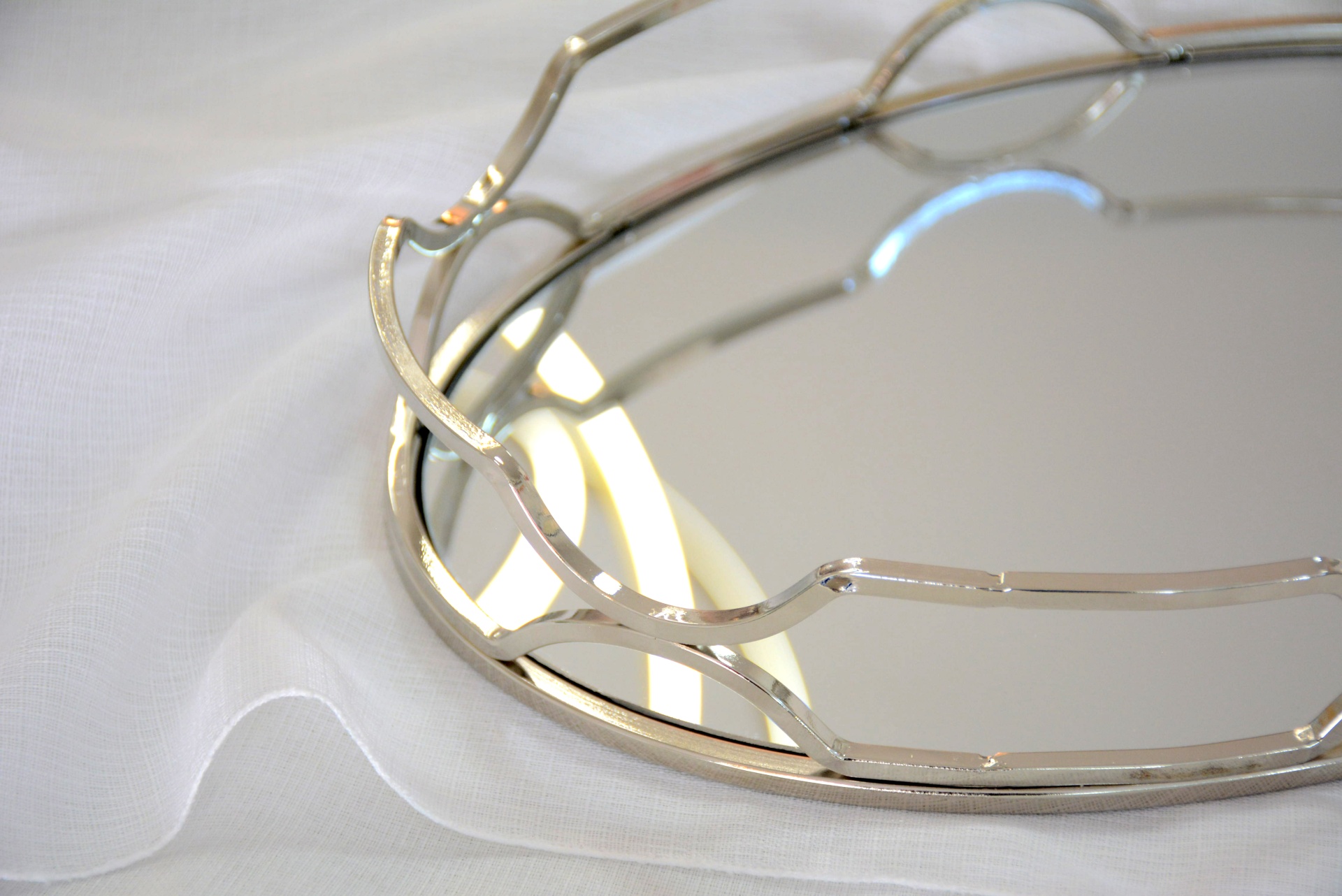 Bandeja Decorativa fabricada em Metal nos Tons Prateados com Espelho!