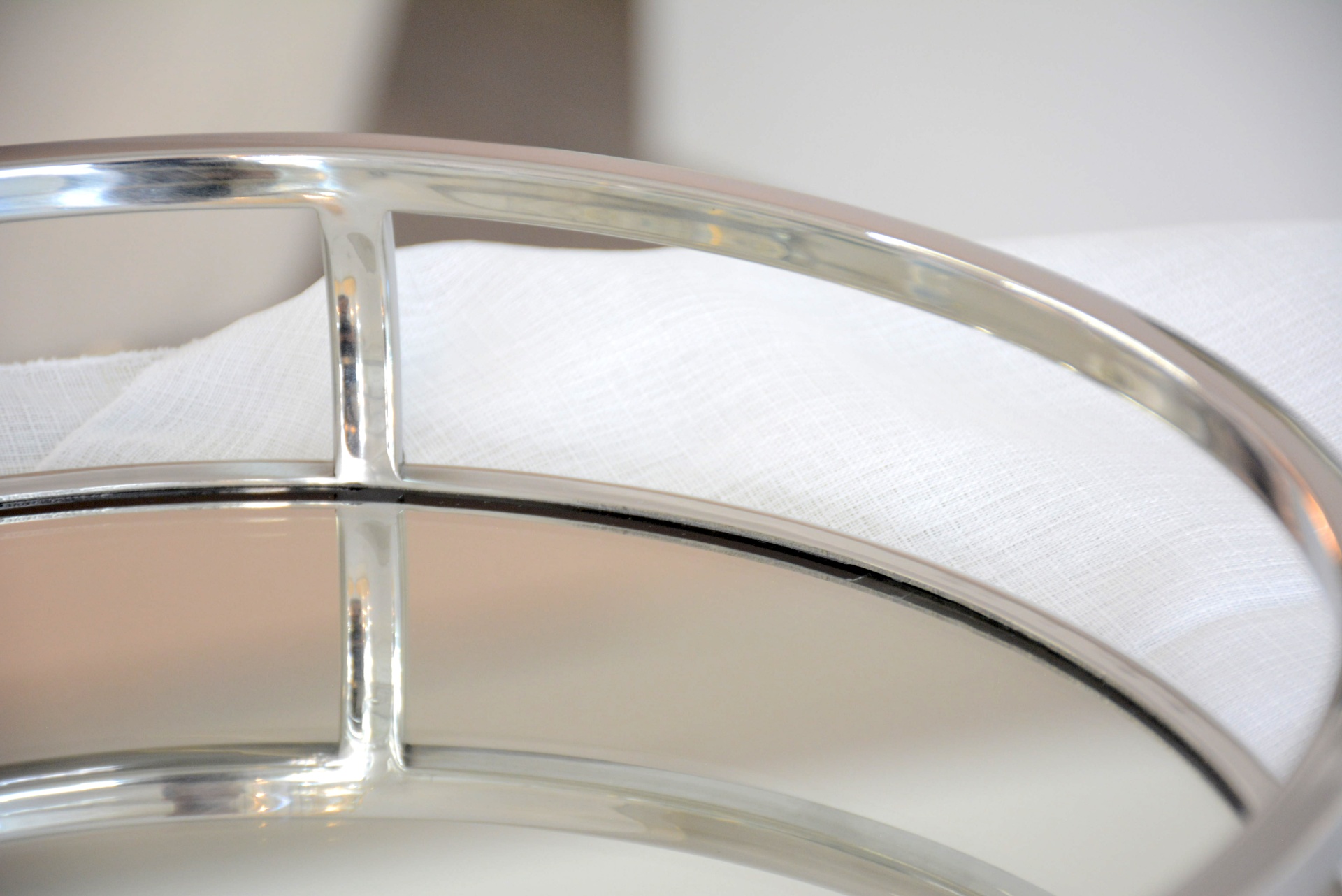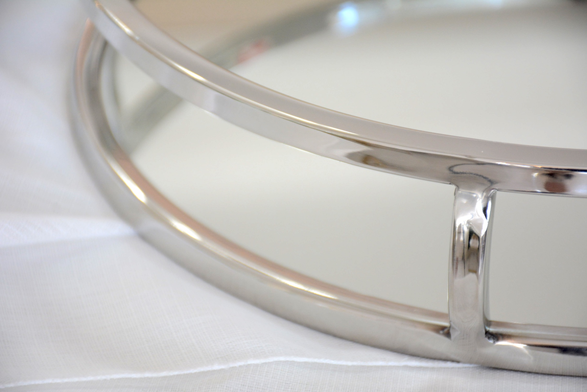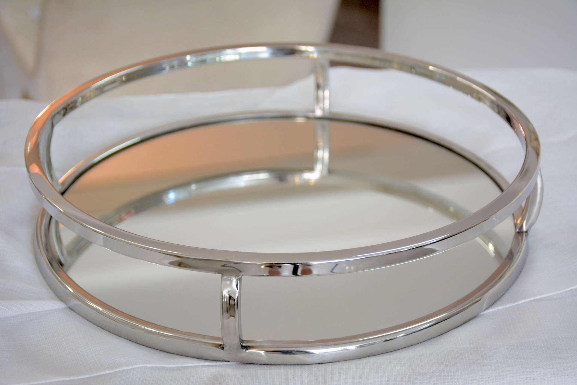 Bandeja Decorativa fabricada em Metal nos Tons Prateados com Espelho!
