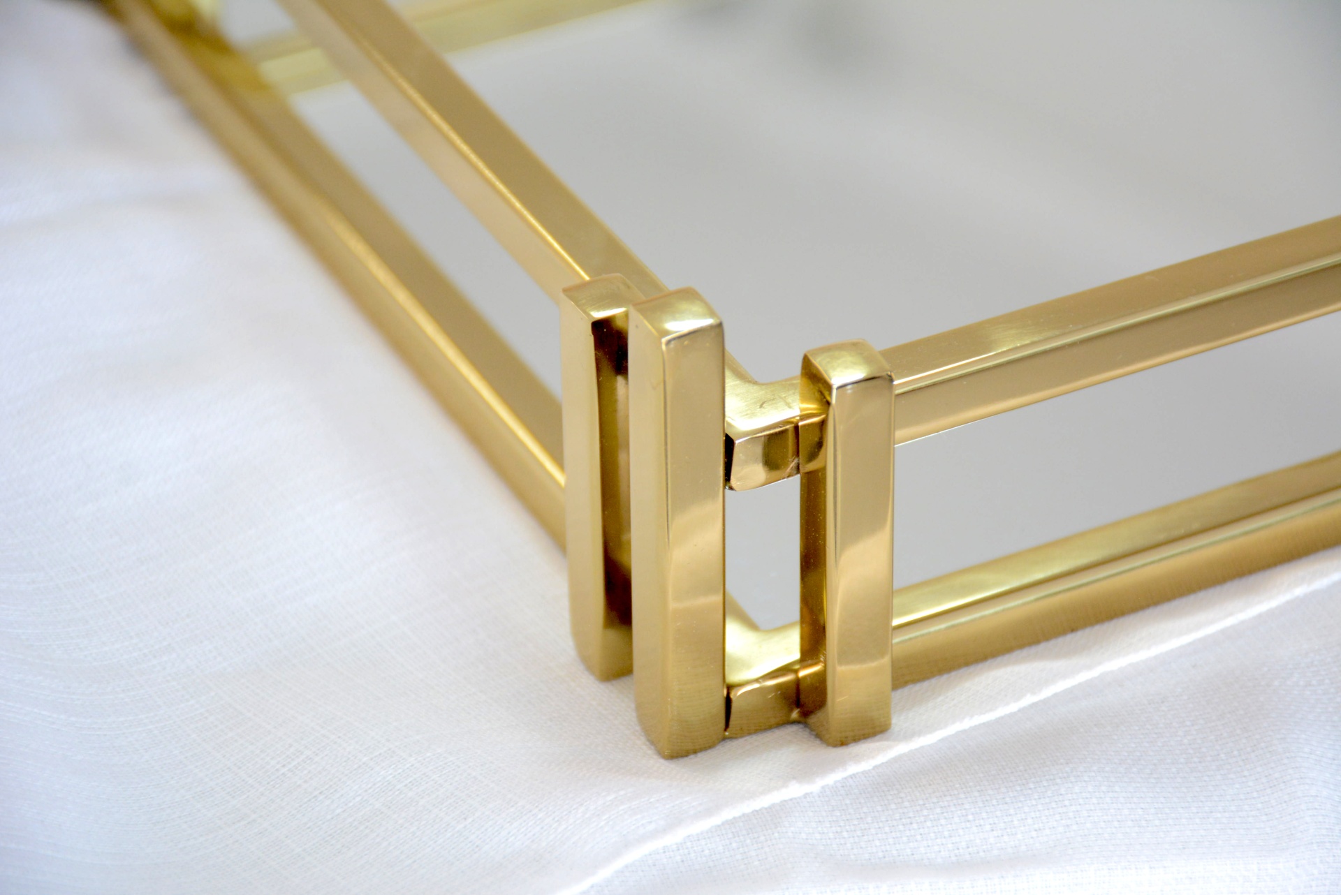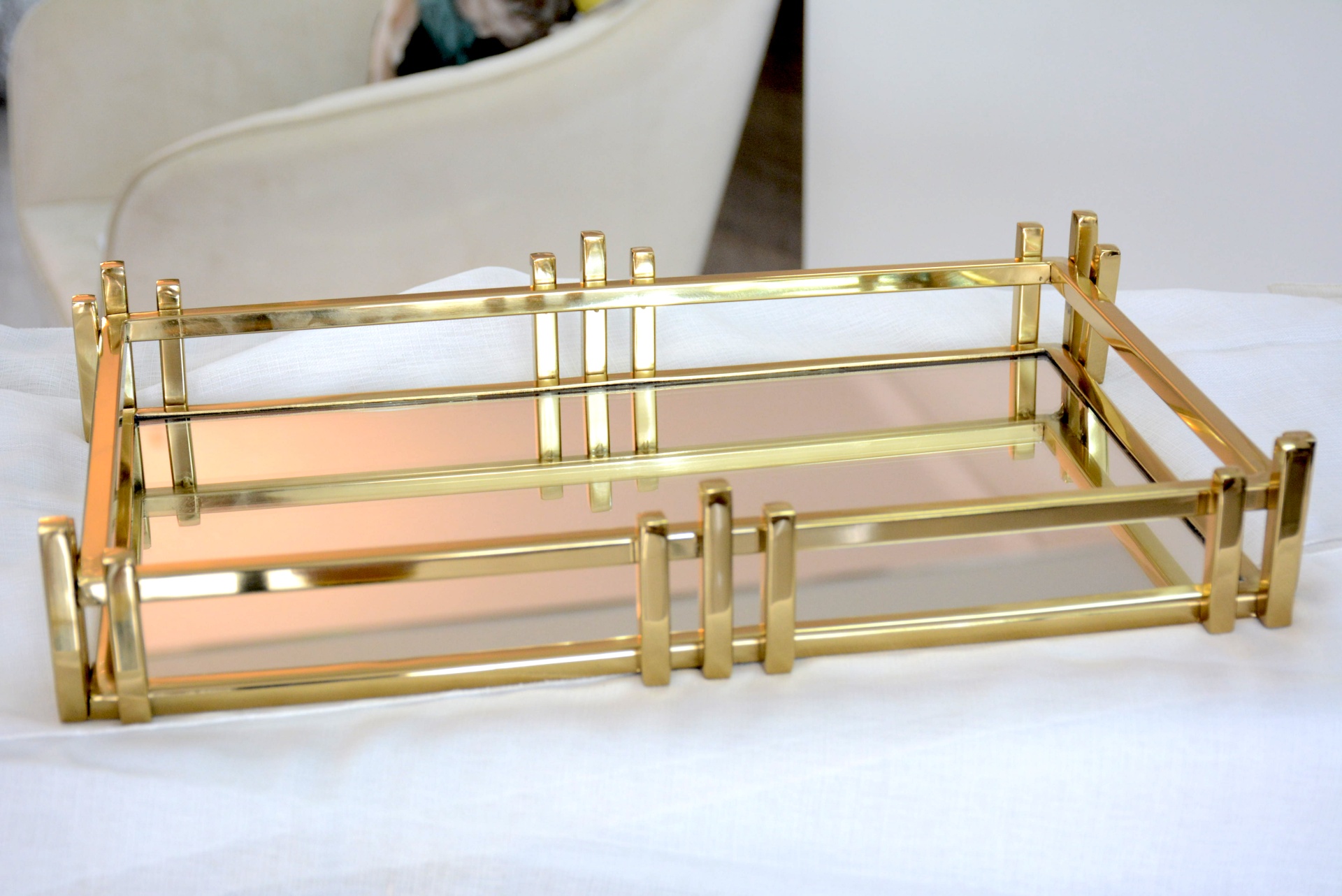 Bandeja Decorativa fabricada em Metal nos Tons Dourados com Espelho!