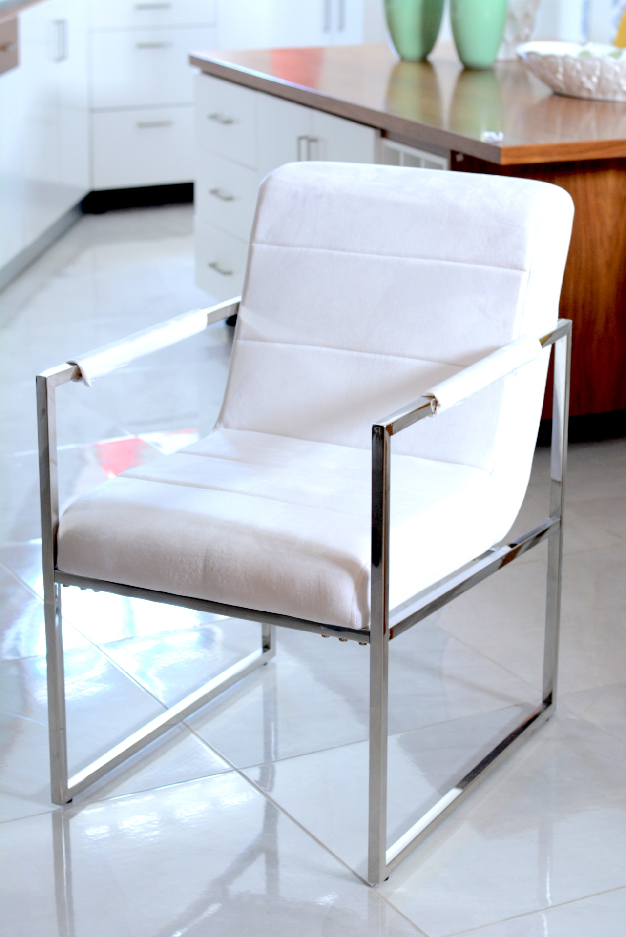 Cadeirão Elegante nos Tons Brancos com Patas em Inox Prateado!