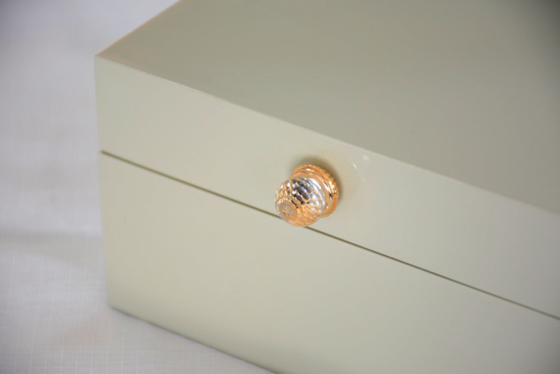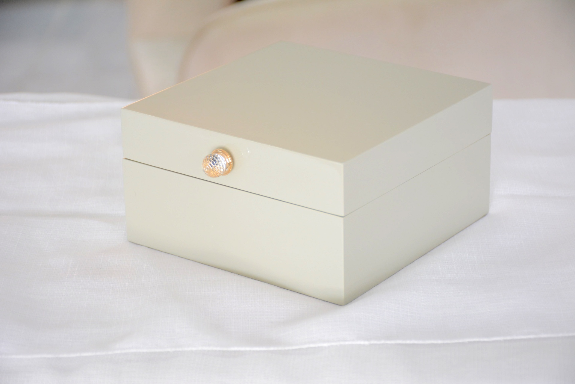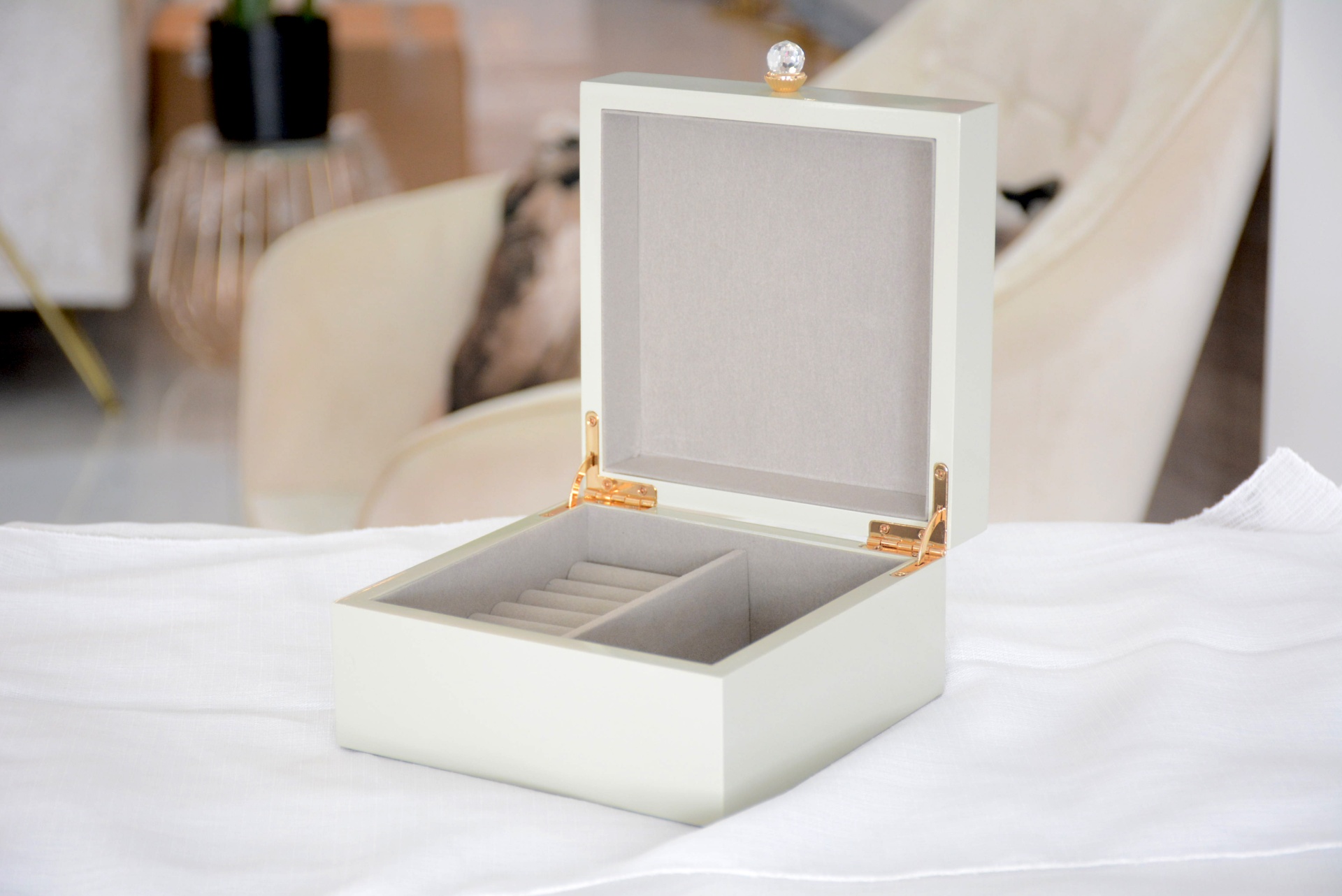 Guarda-Jóias nos tons Beges e fabricado em Madeira e Vidro.