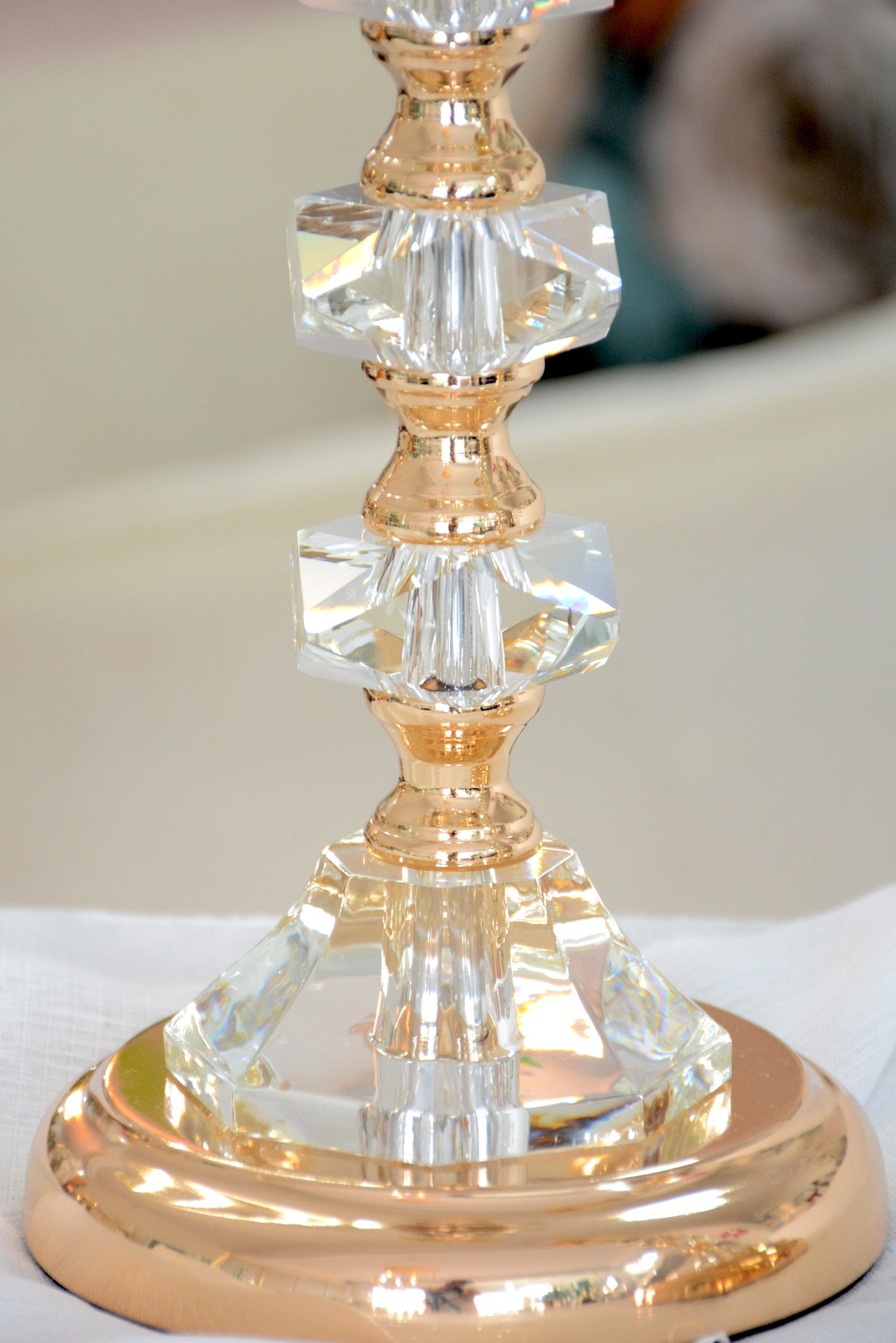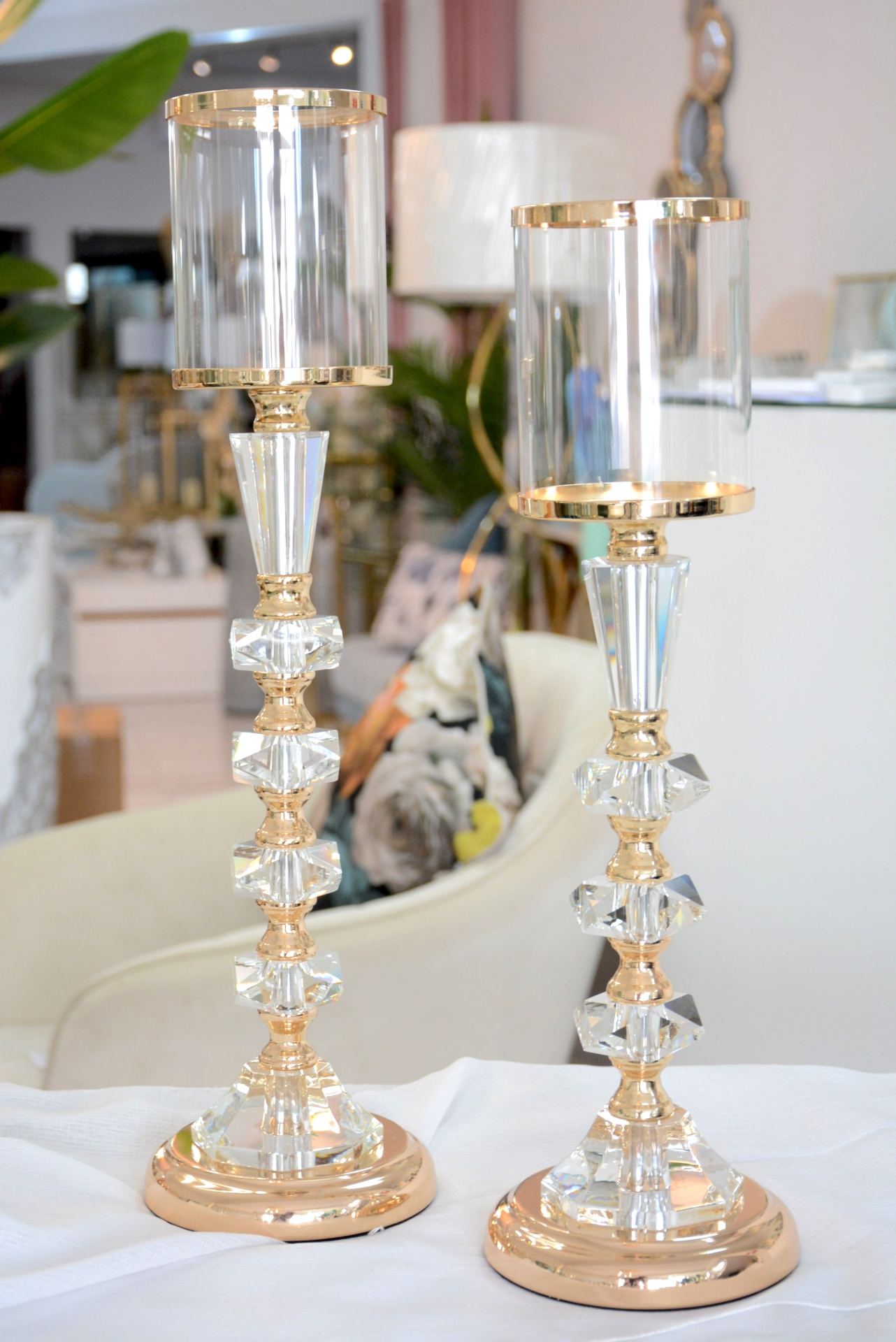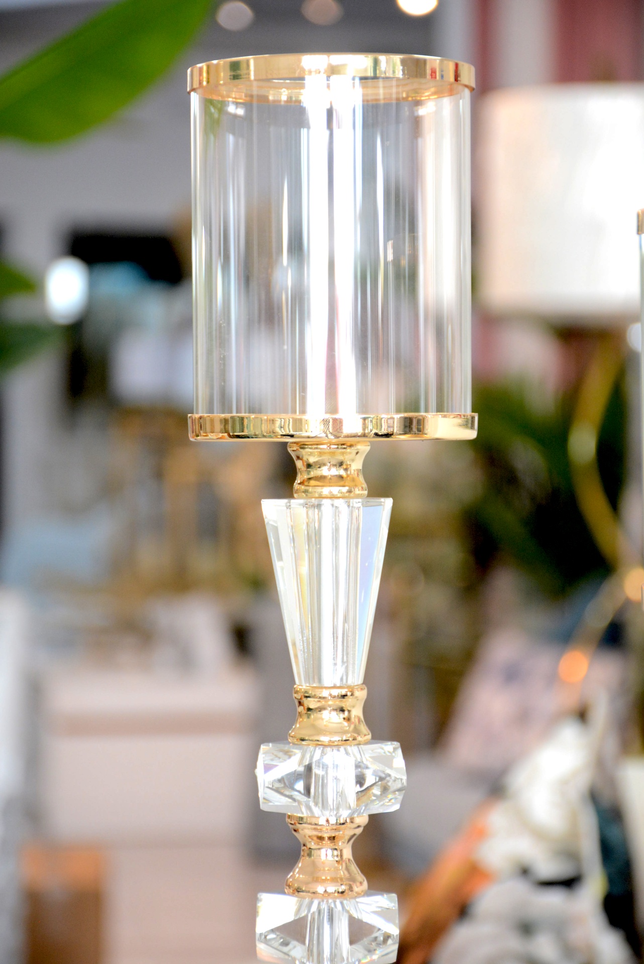 Conjunto de Castiçais fabricados em Metal e Vidro nos tons Dourados.