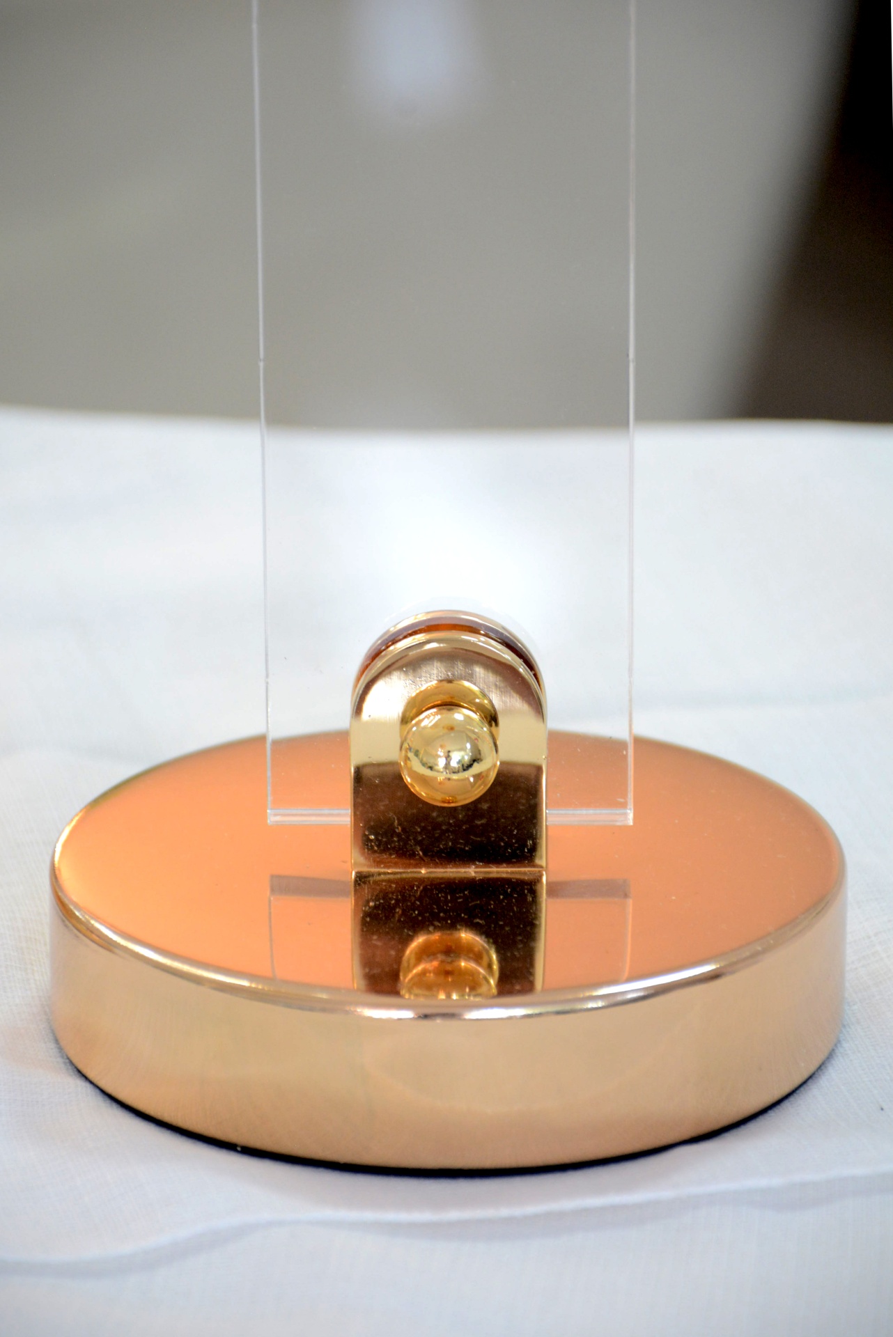 Conjunto de Castiçais fabricados em Metal e Vidro nos tons Dourados.