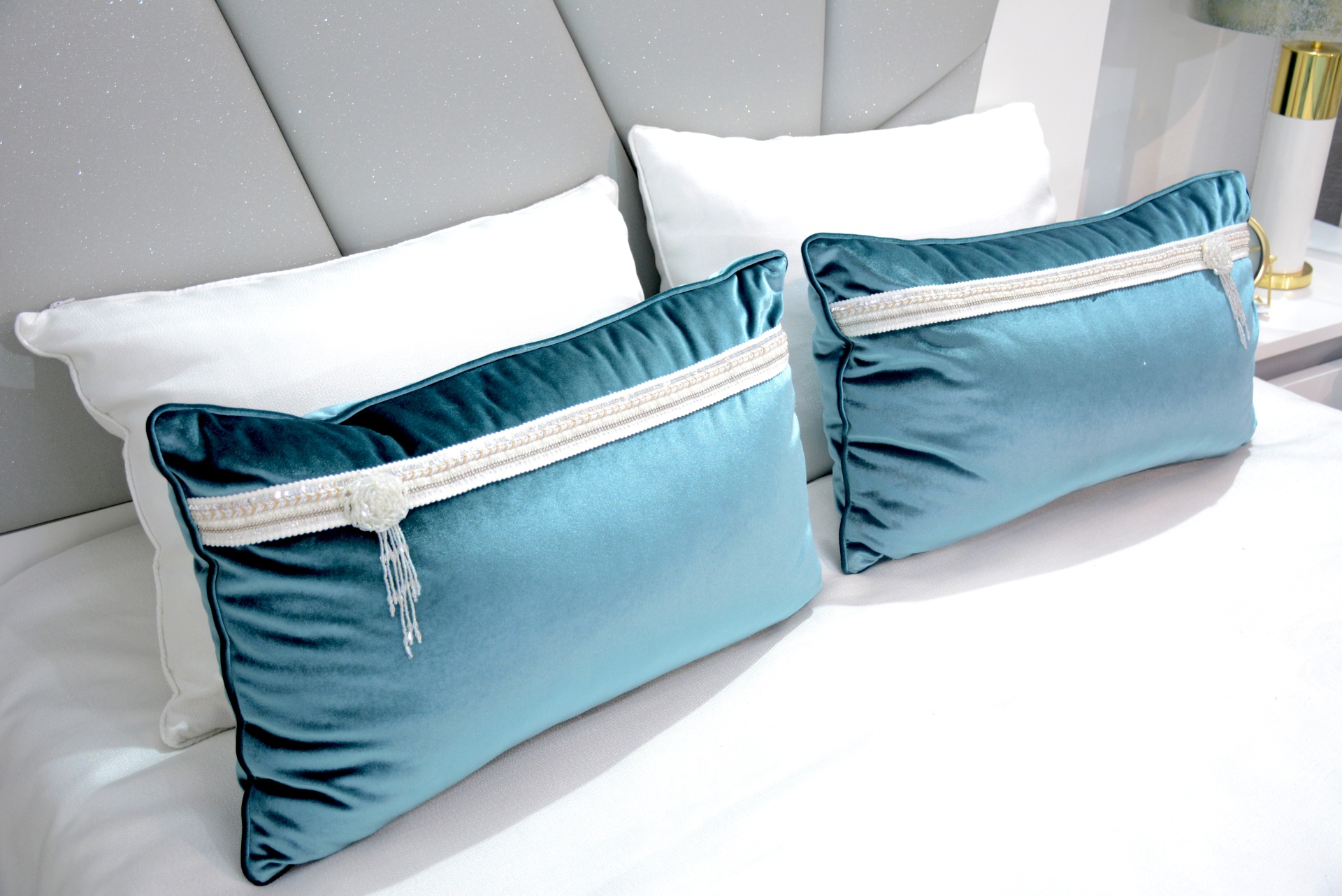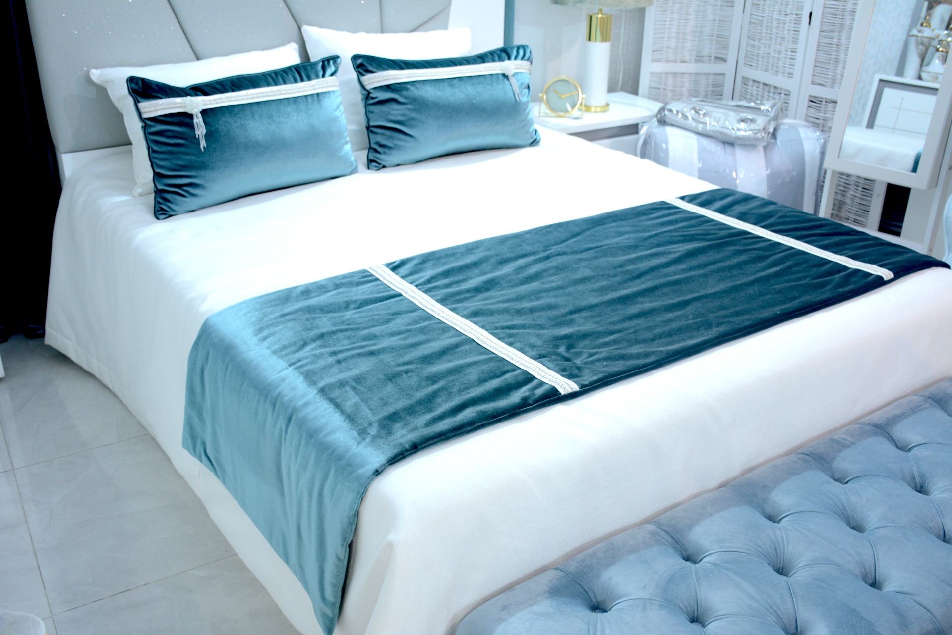Colcha Decorativa nos Tons Brancos com 2 Almofadas Brancas.