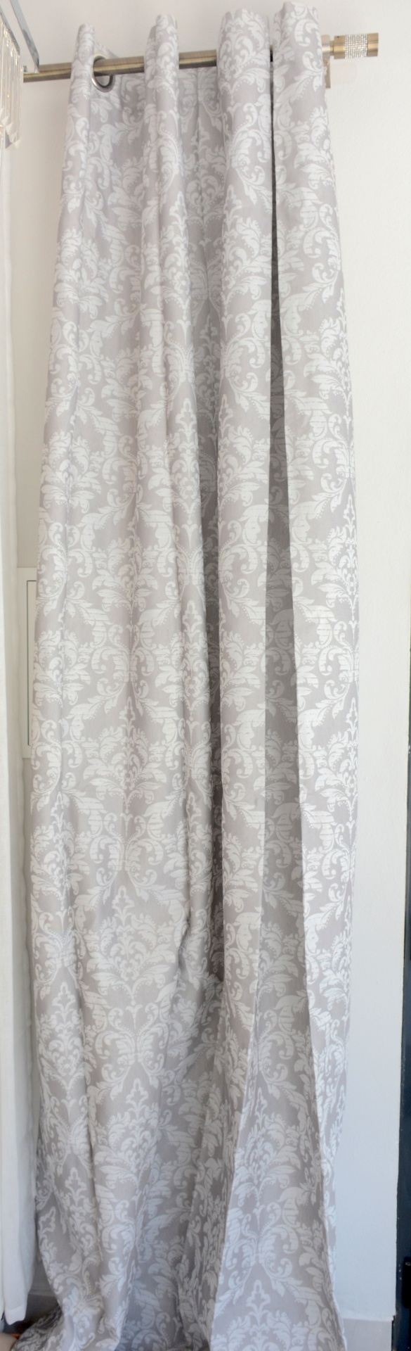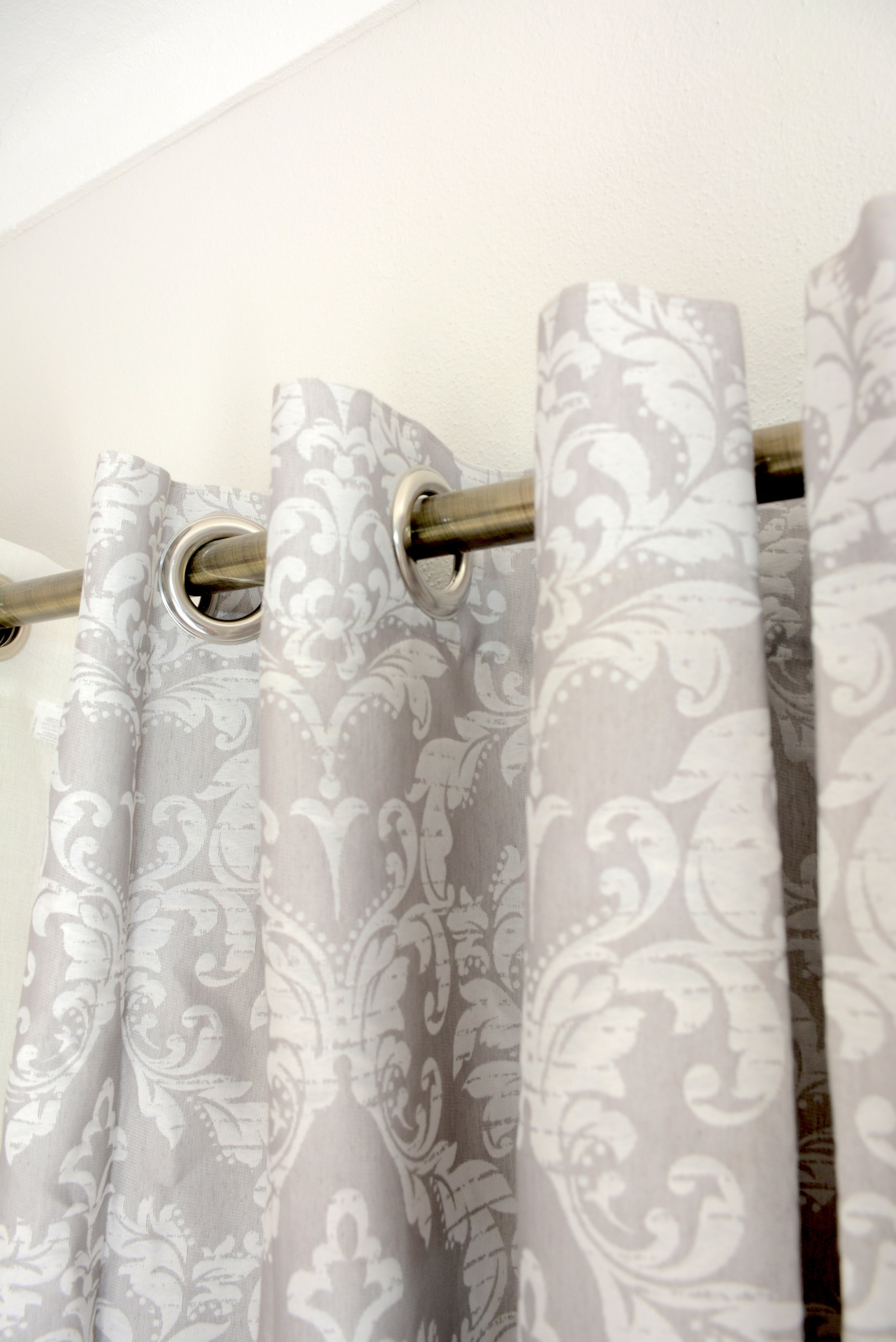 Conjunto de Cortinados Decorativos nos Tons Branco e Cinza com Design.
