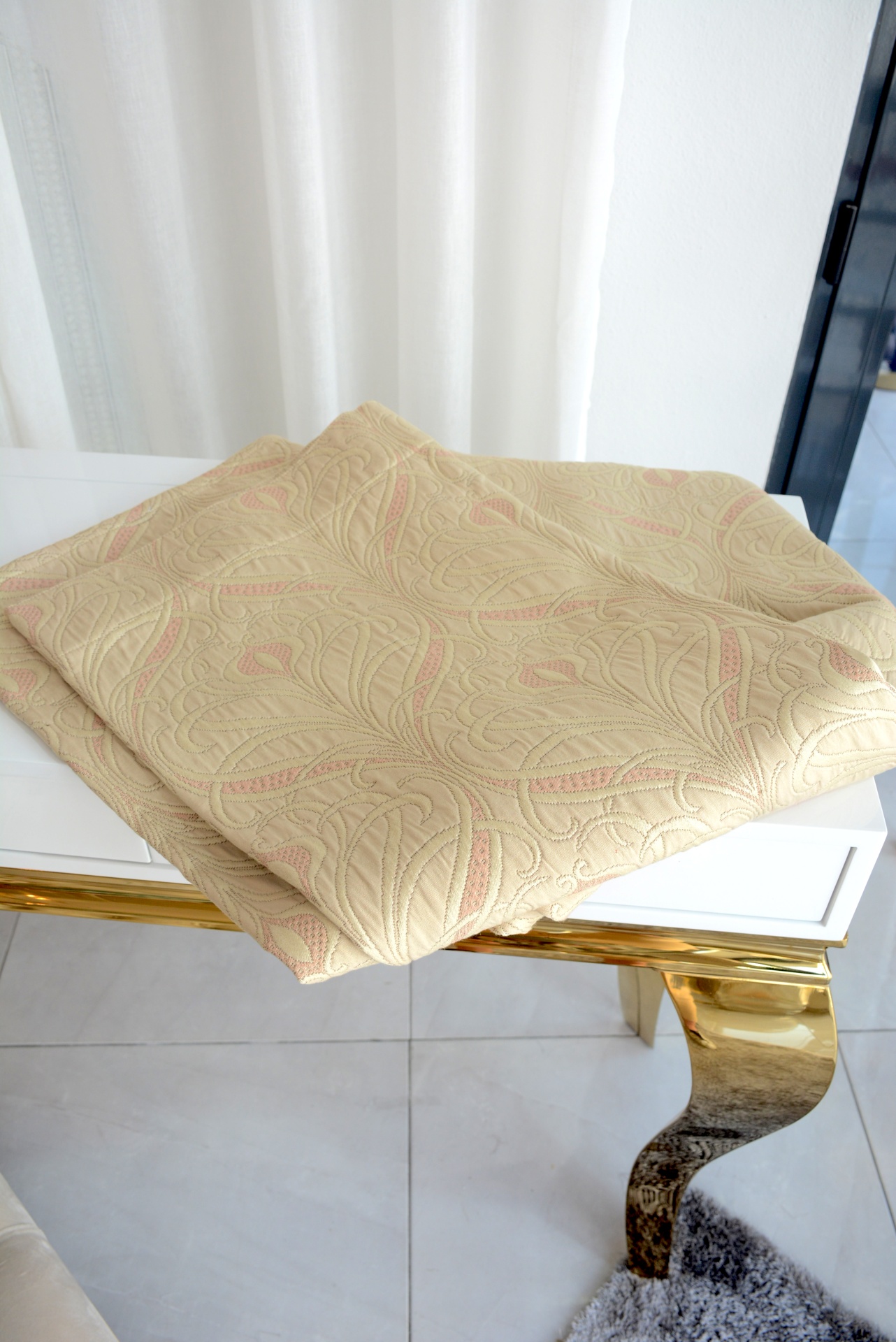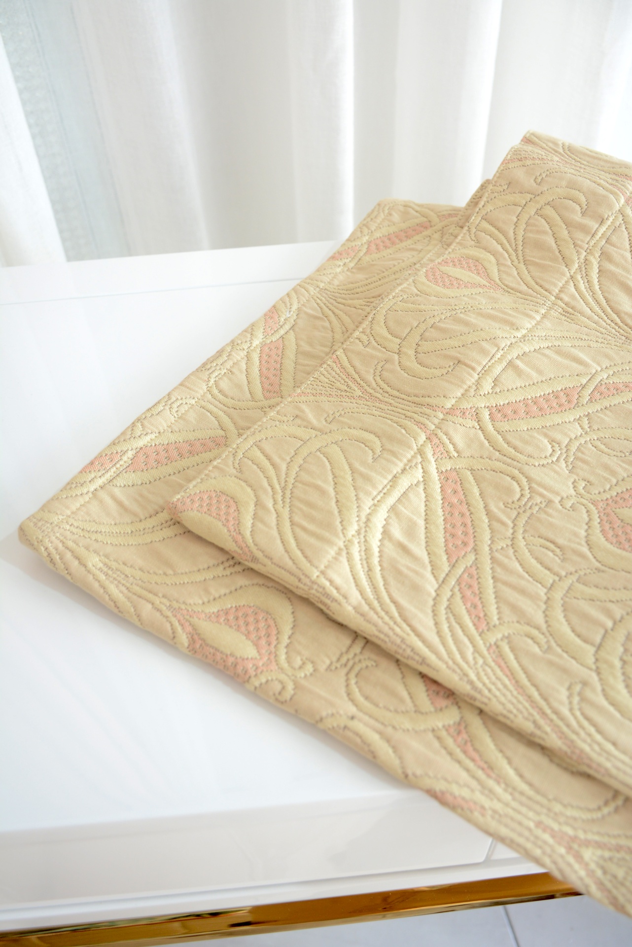 Conjunto de Cortinados Decorativos nos Tons Rosa e Bege com Design.