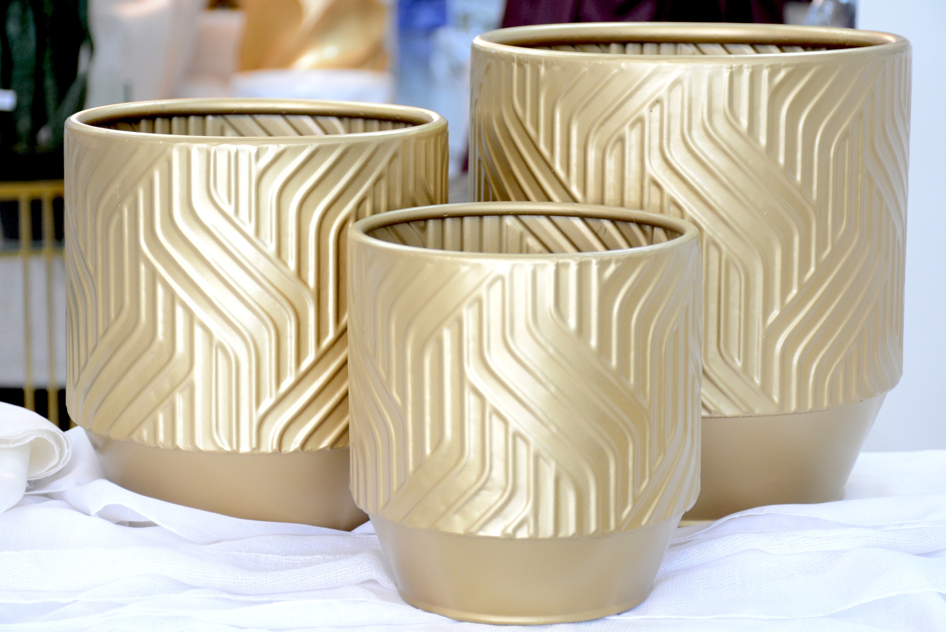 Conjunto de Floreiras fabricadas em Metal nos Tons Dourados!