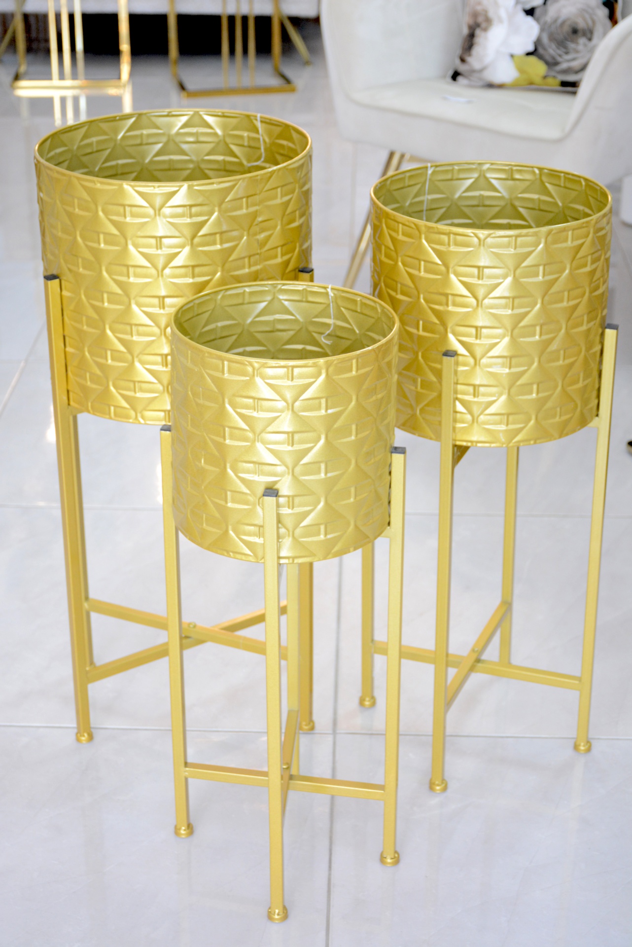 Conjunto de Floreiras fabricadas em Metal nos Tons Dourados!