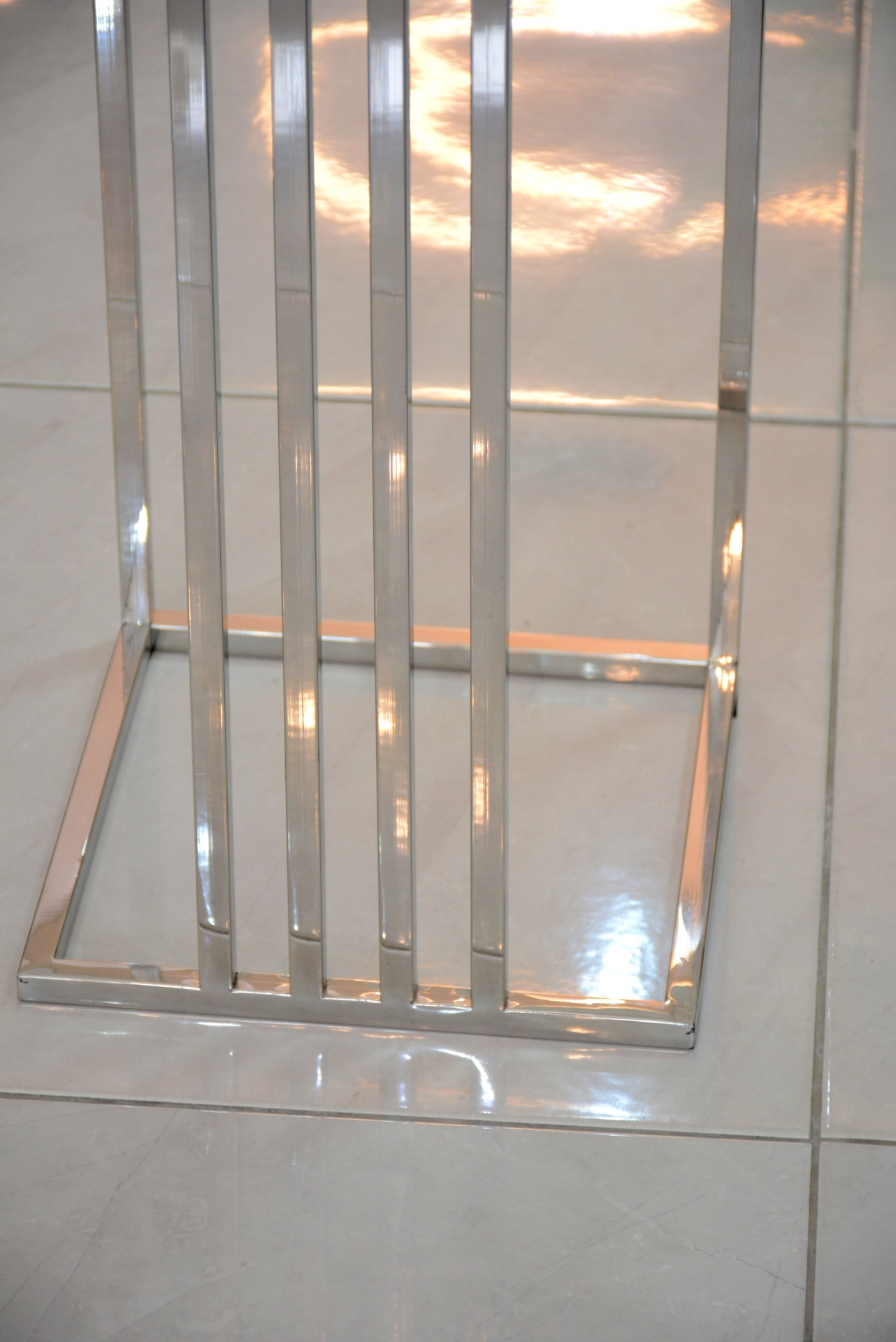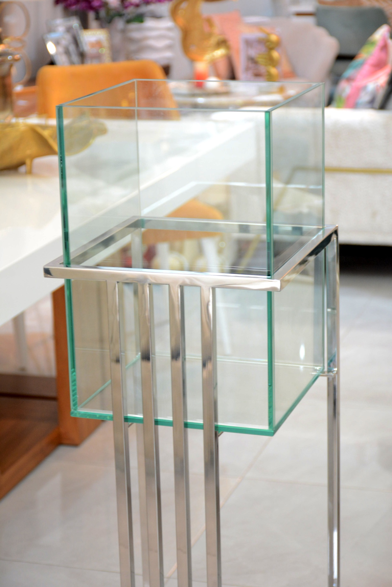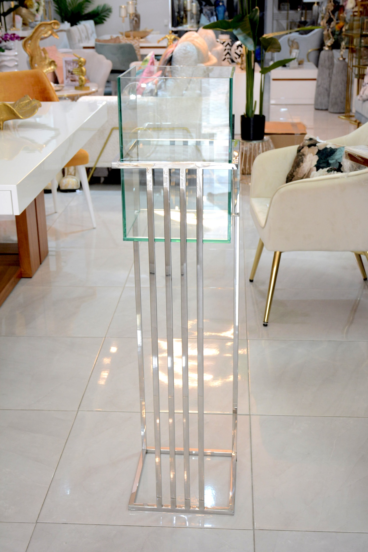 Floreira fabricada em Vidro e com Base em Inox nos Tons Prateados!