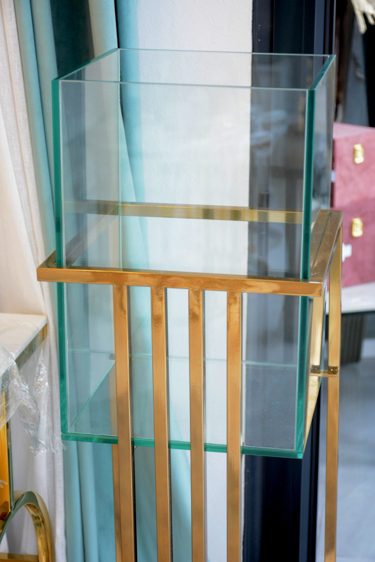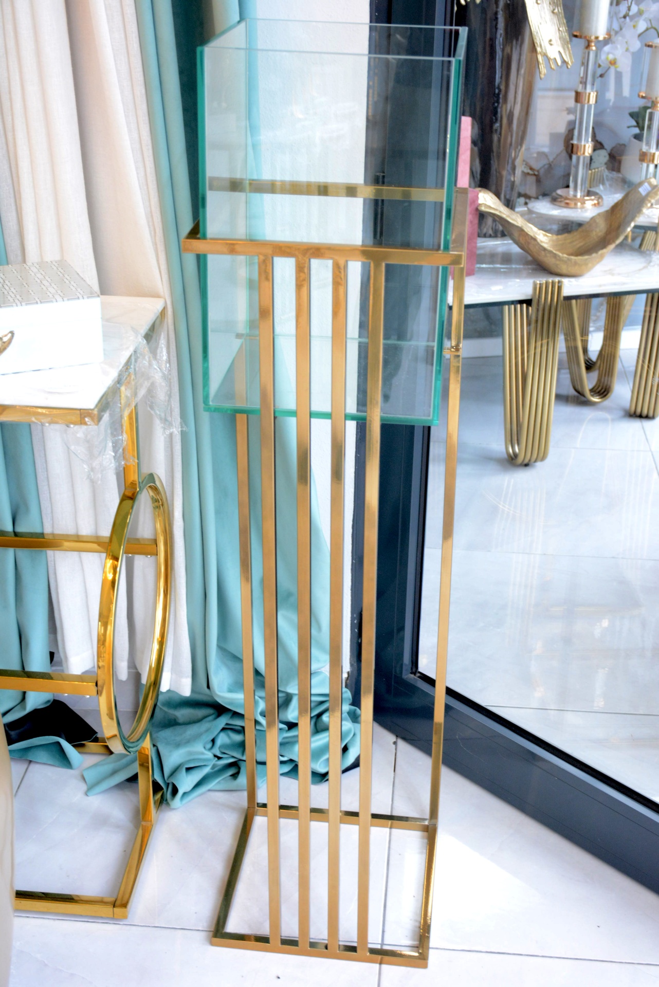 Floreira fabricada em Vidro e com Base em Inox nos Tons Dourados!