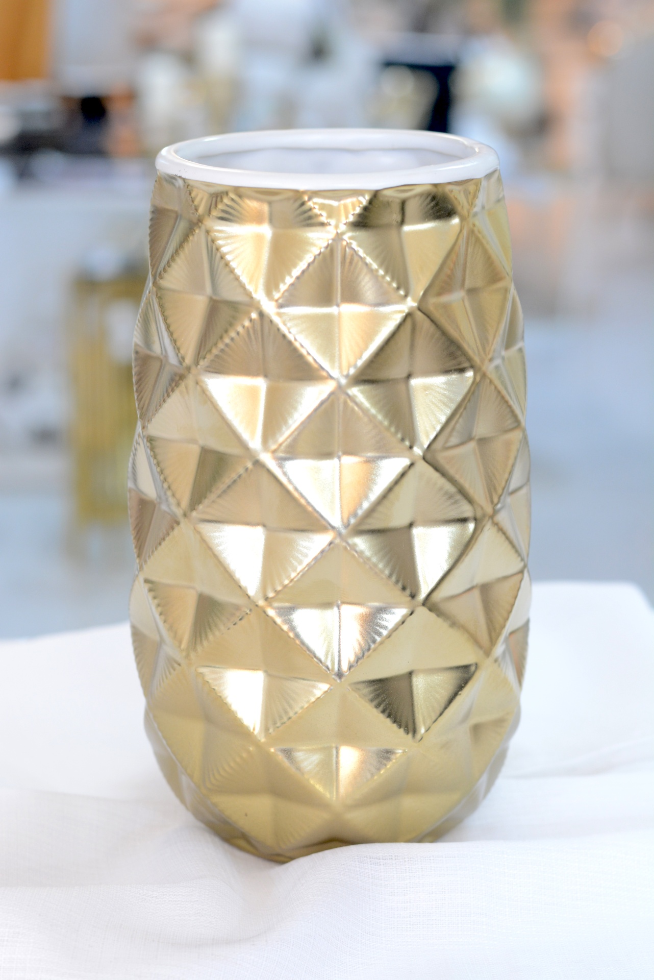 Jarra Decorativa fabricada em Cerâmica nos Tons Dourados com Detalhe em Branco.