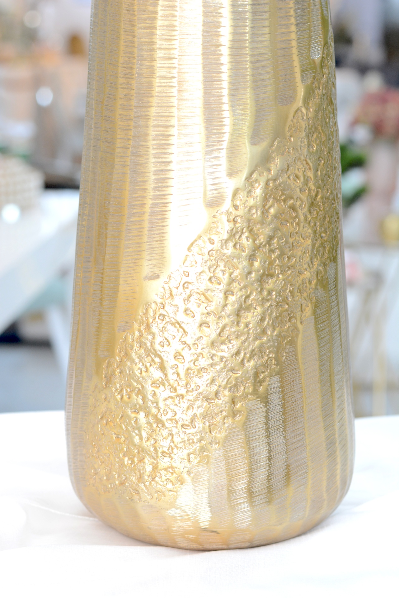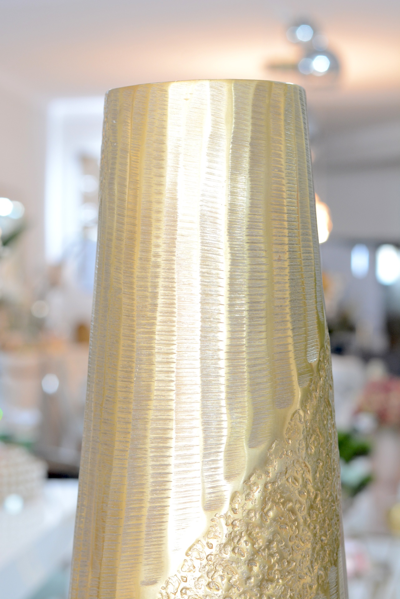 Jarra Decorativa fabricada em Metal nos Tons Dourados.
