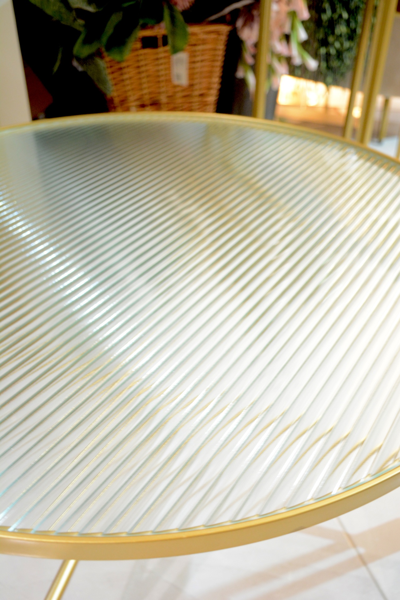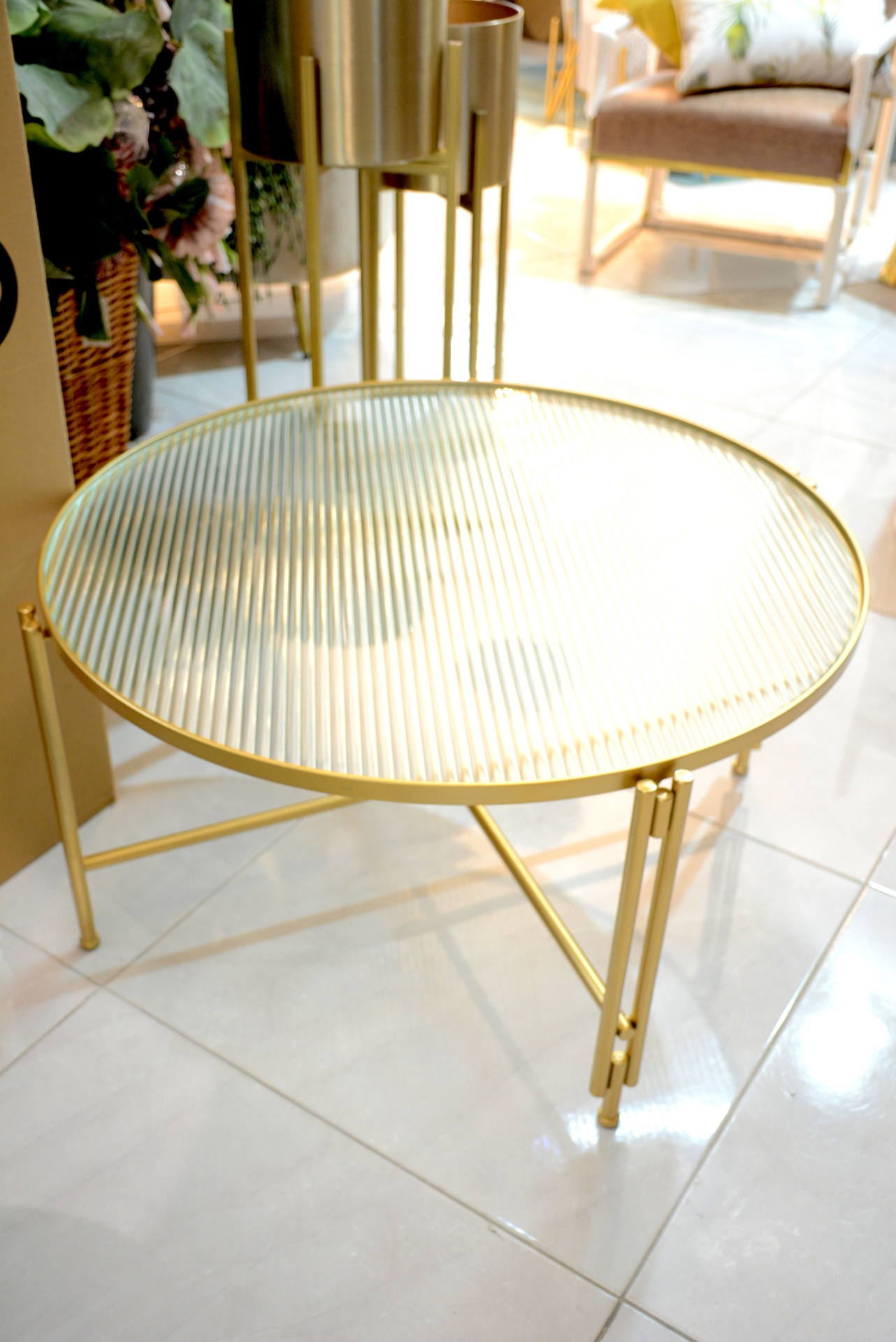 Mesa de Apoio Circular com base fabricada em Inox Dourado e Tampo em Vidro!