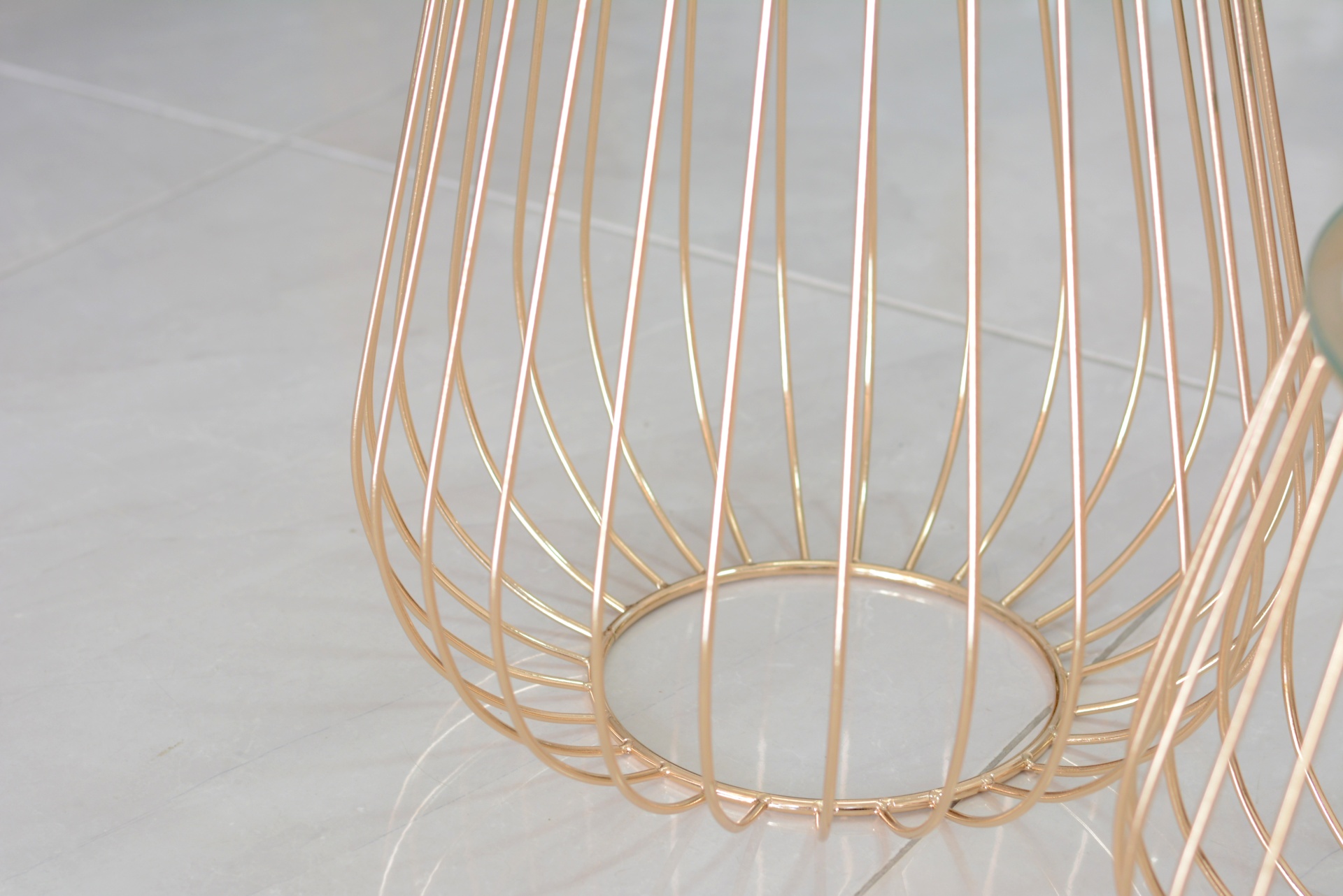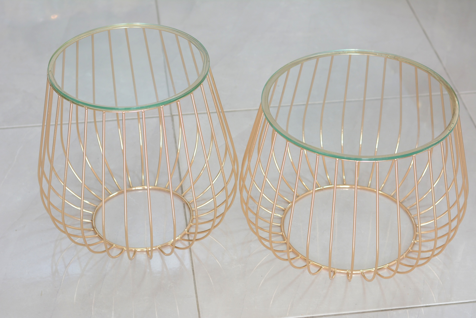 Mesas de Centro Baixas com Tampo em Vidro e base com Design em Dourado..