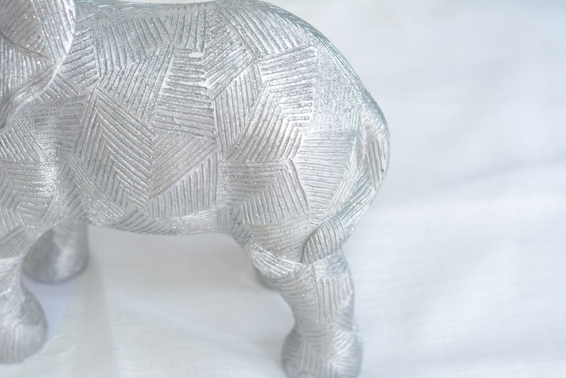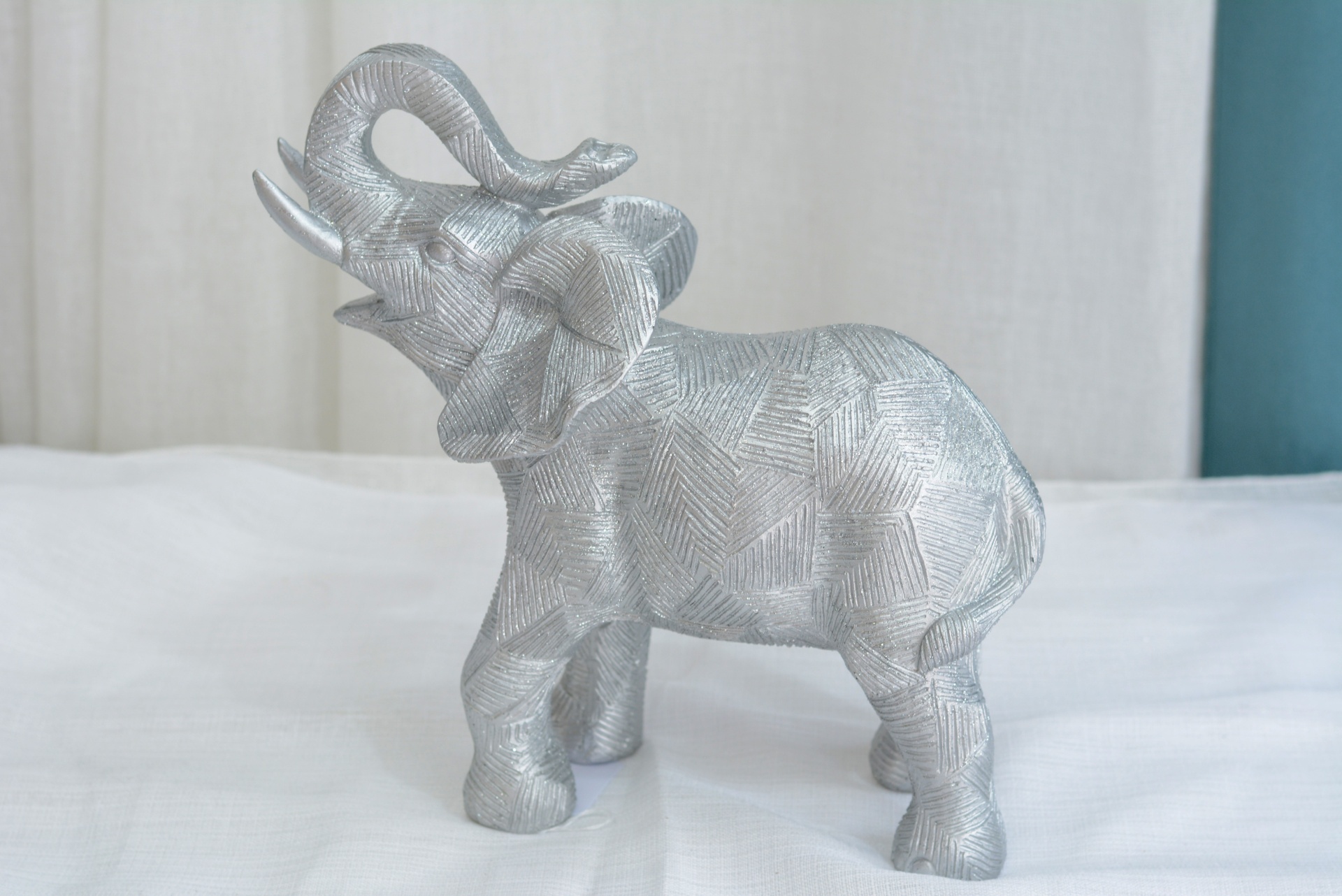 Peça Decorativa com formato de Elefante nos Tons Prateados.