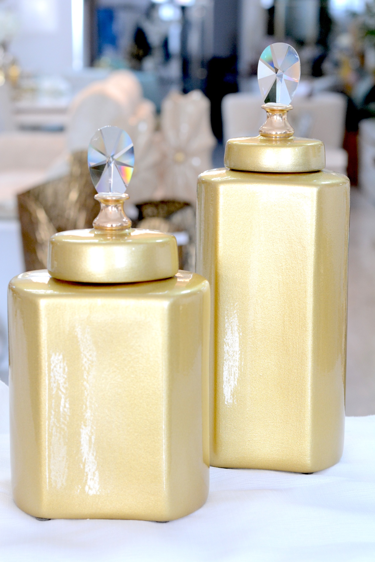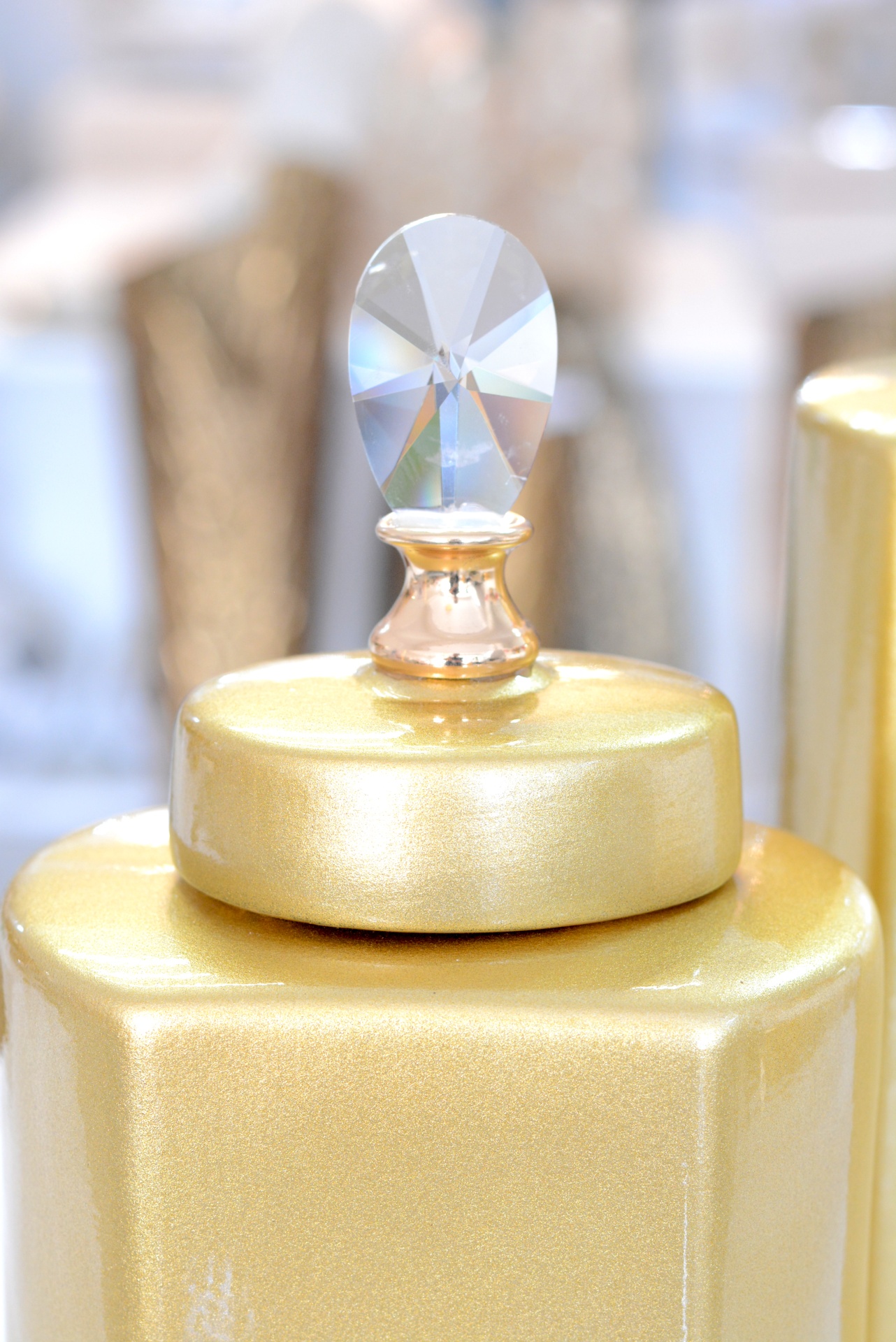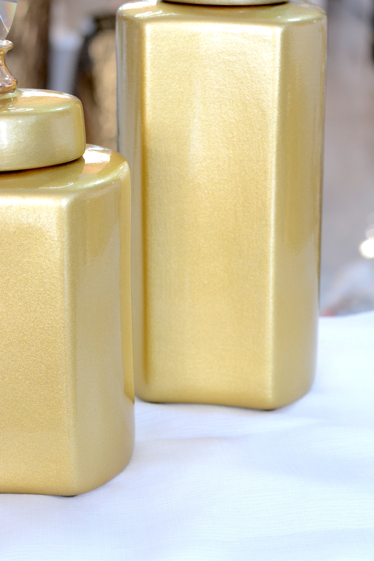 Conjunto de Potes Decorativos fabricados em Cerâmica nos Tons Dourados.