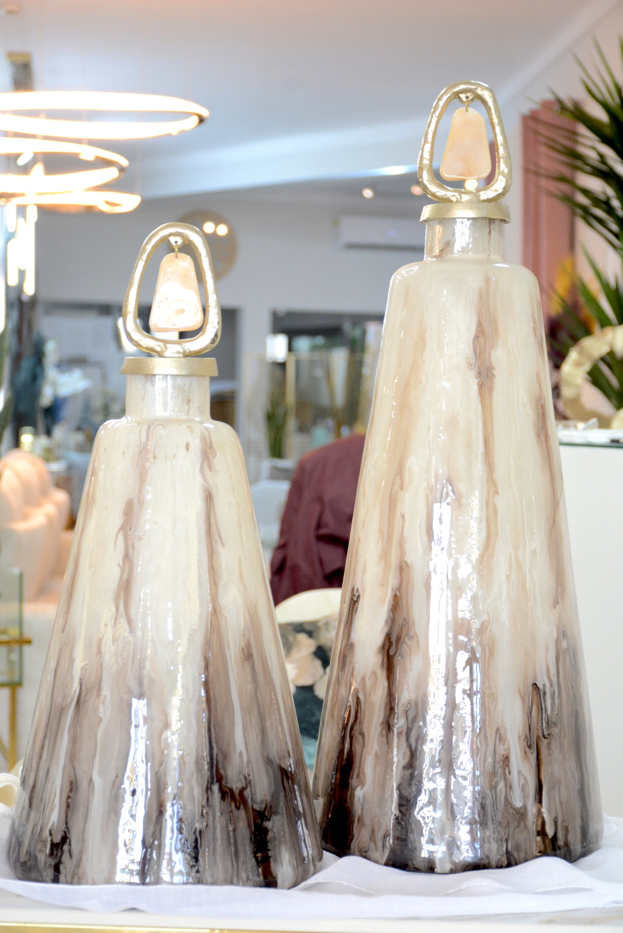 Conjunto de Potes Decorativos fabricados em Vidro com Vários Tons.