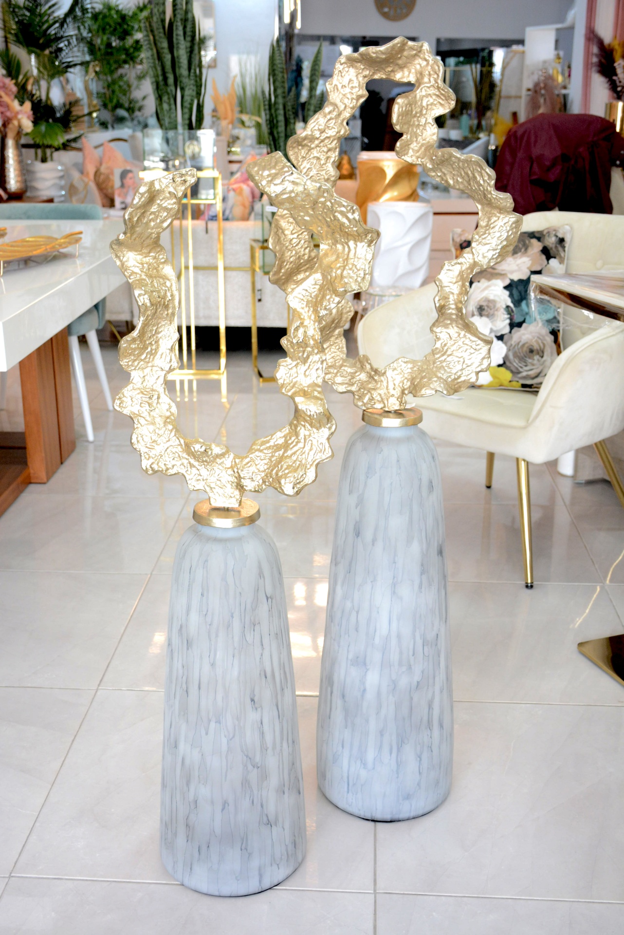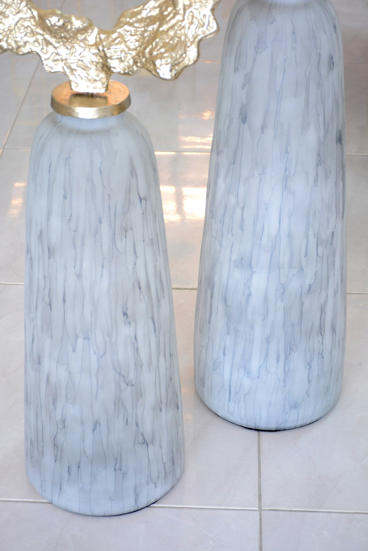 Conjunto de Potes Decorativos fabricados em Vidro nos Tons Azuis e Dourados.