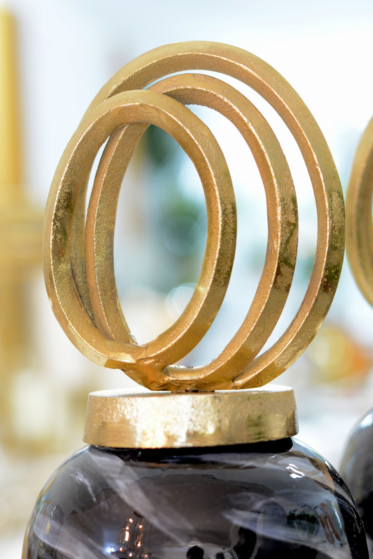 Conjunto de Potes Decorativos fabricados em Vidro nos Tons Pretos e Brancos e com Tampa em Metal Dourado!