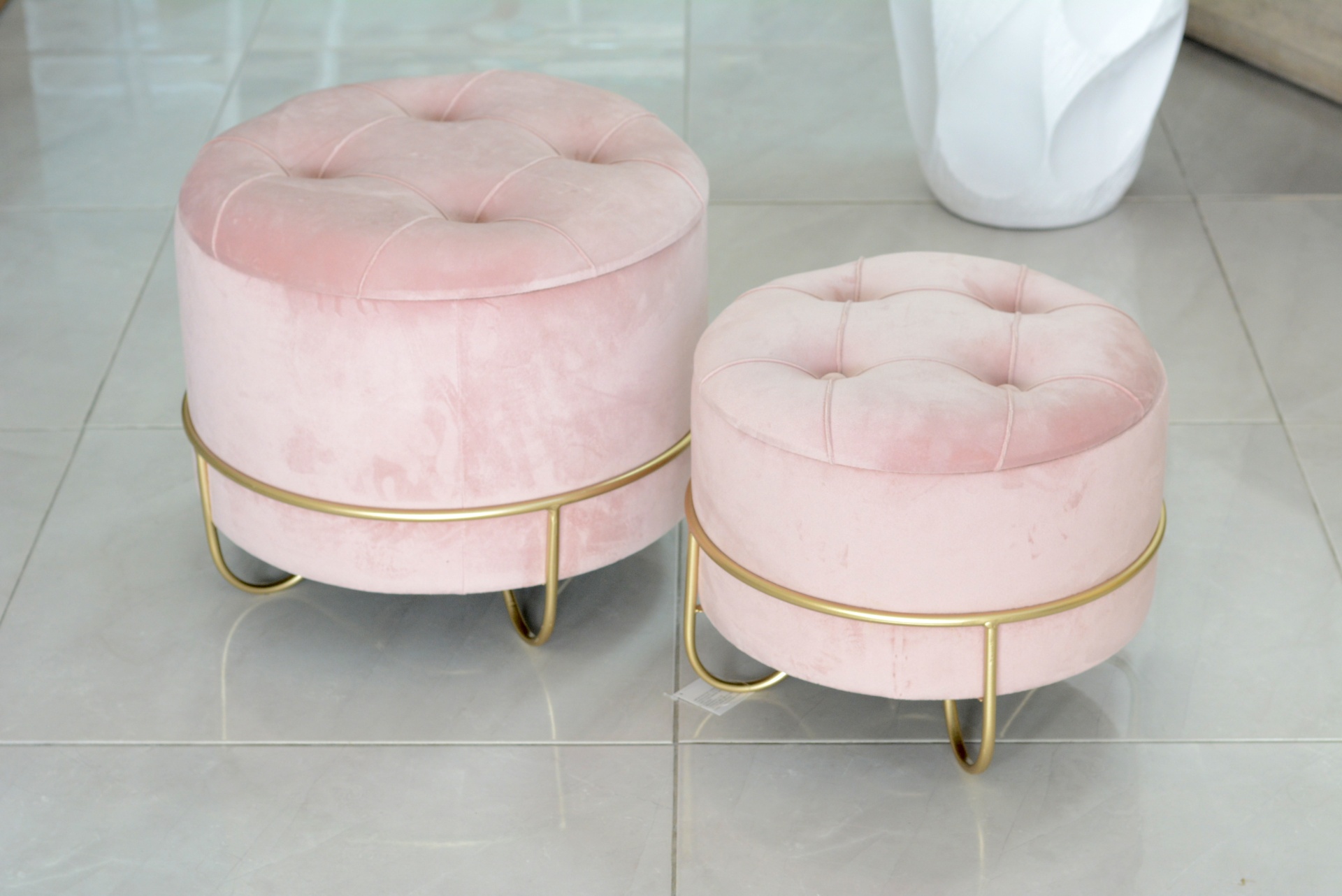 Conjunto de Pufes Decorativos nos Tons Rosa com Base em Metal Dourado!