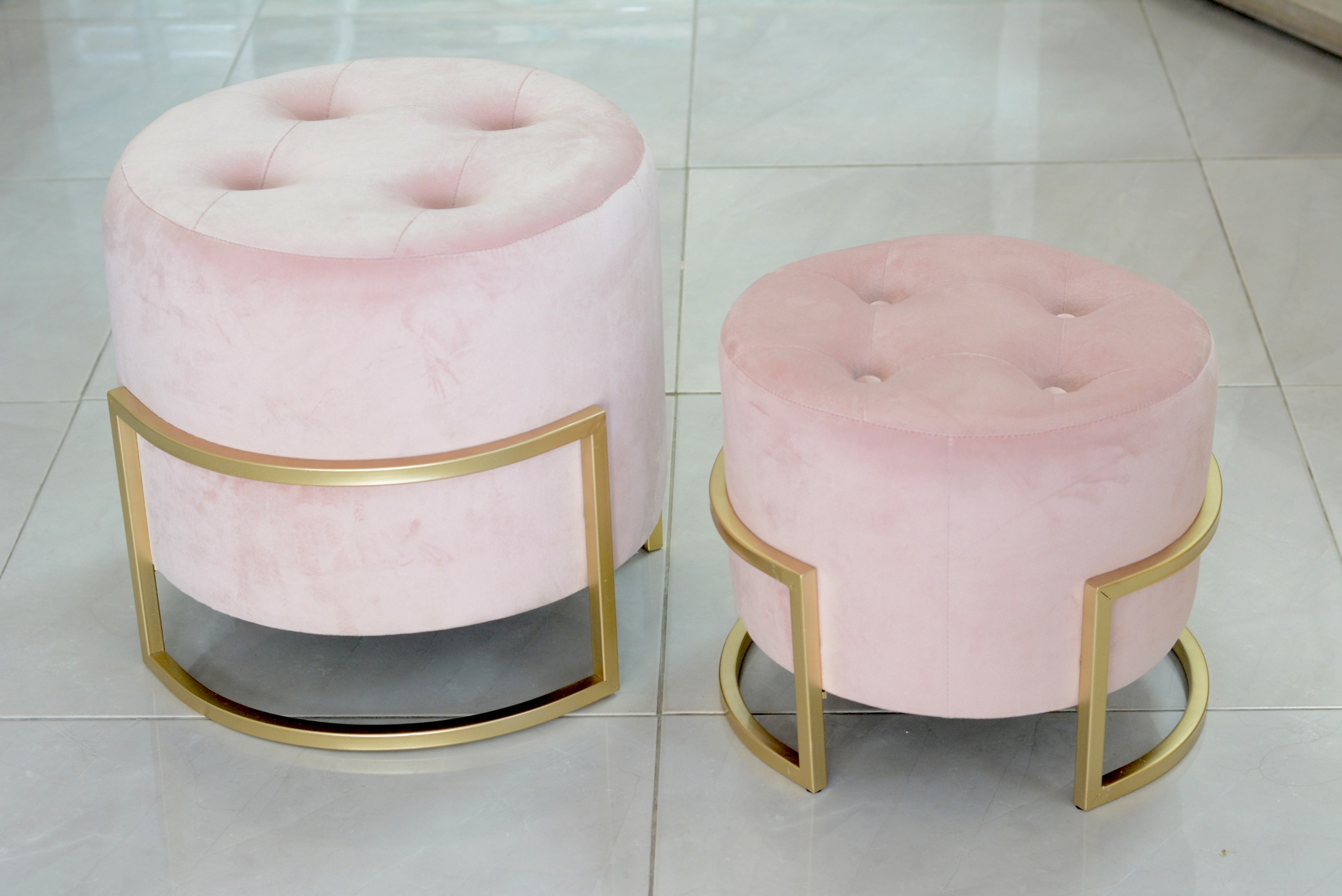 Conjunto de Pufes Decorativos nos Tons Rosa com Base em Metal Dourado!