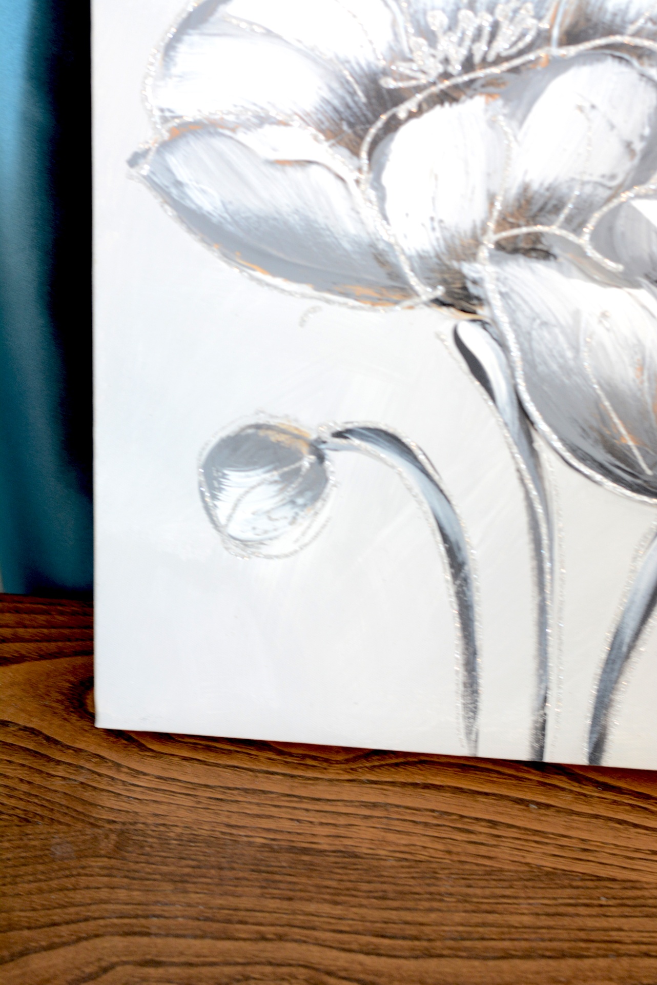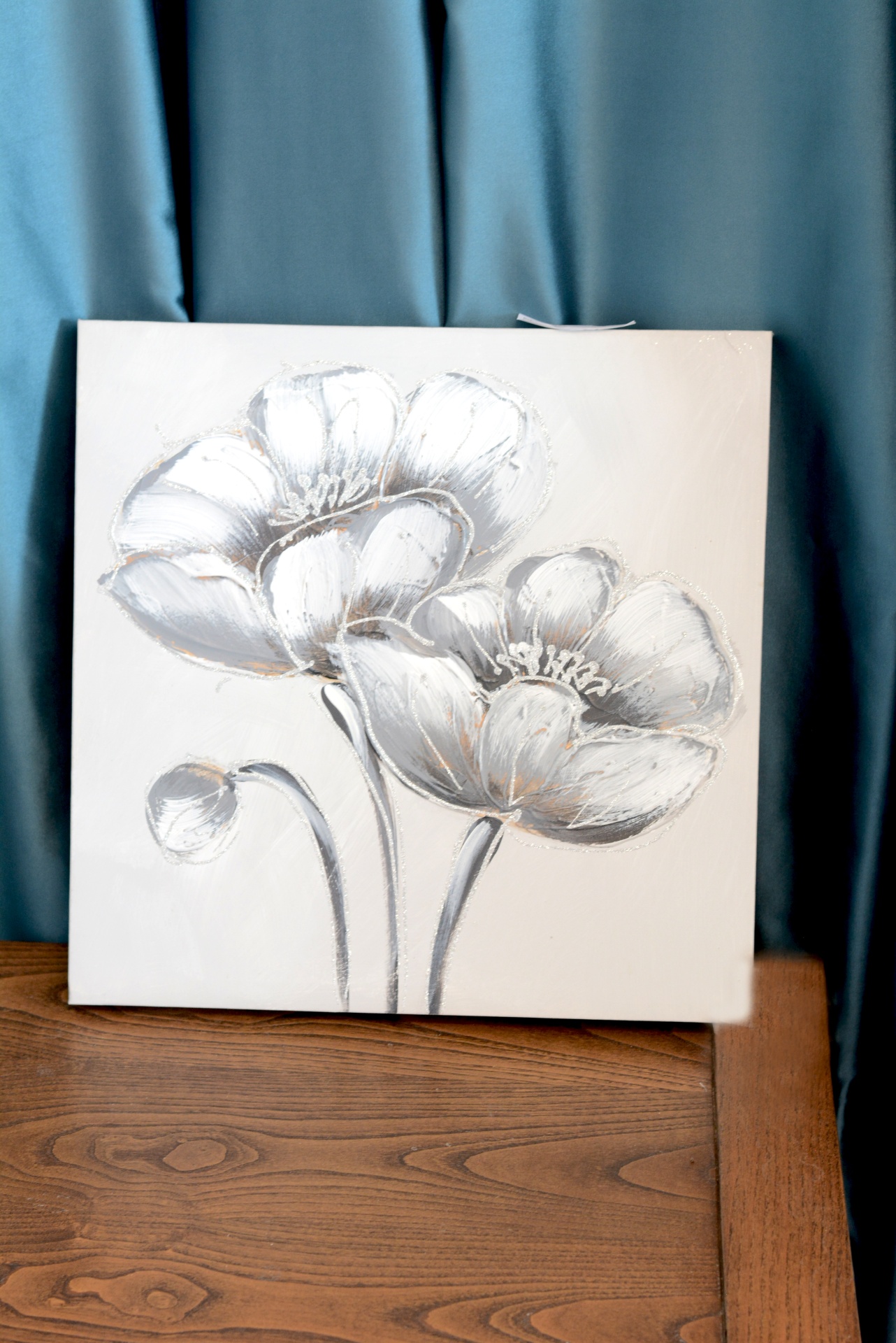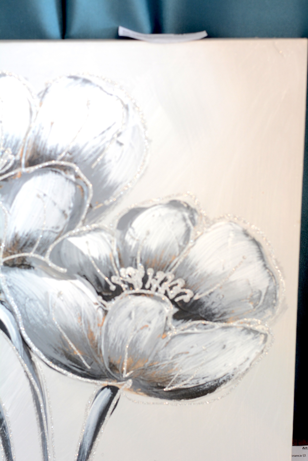Tela com Tema "Flores Brilhantes" nos Tons Brancos e Cinza com relevo.