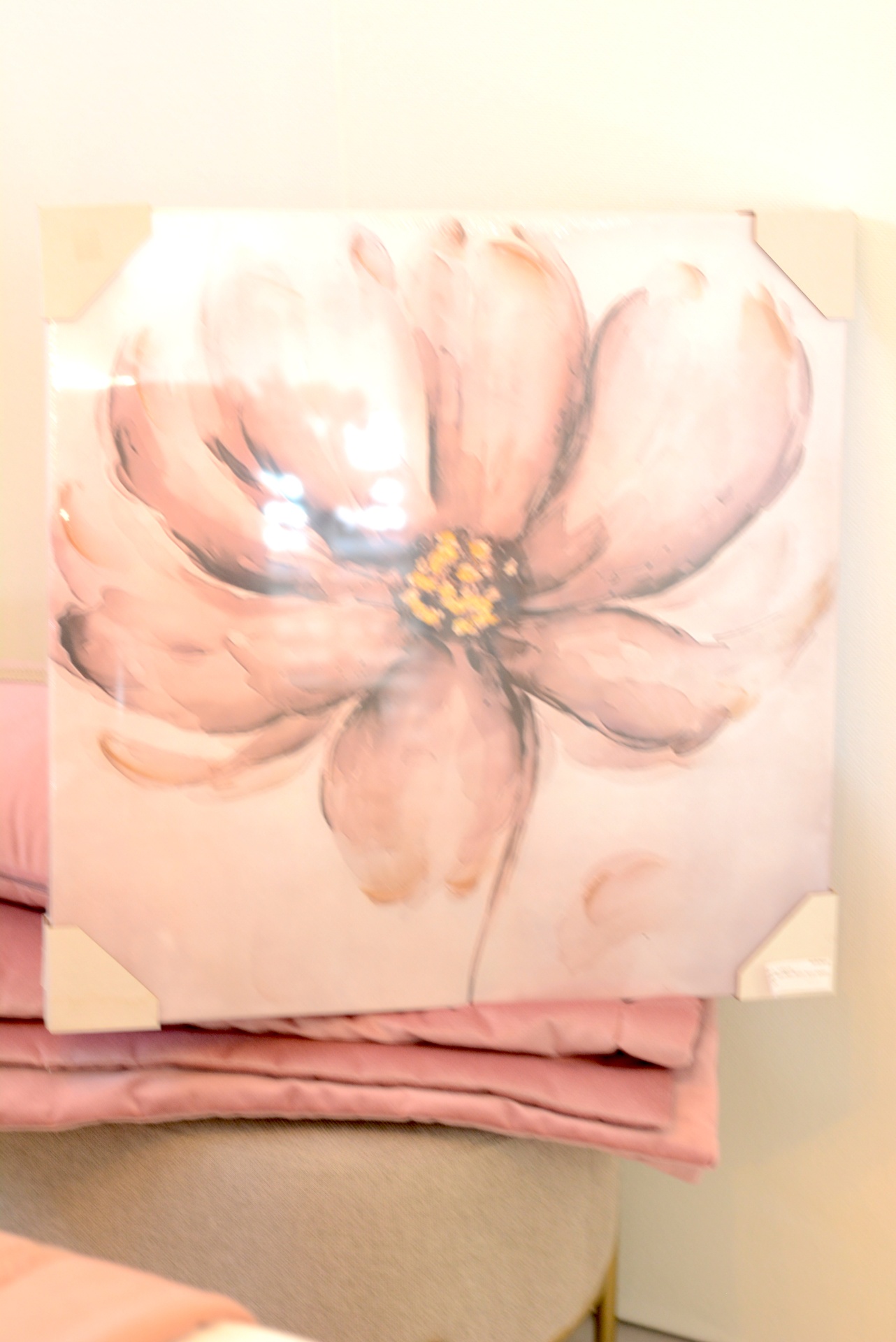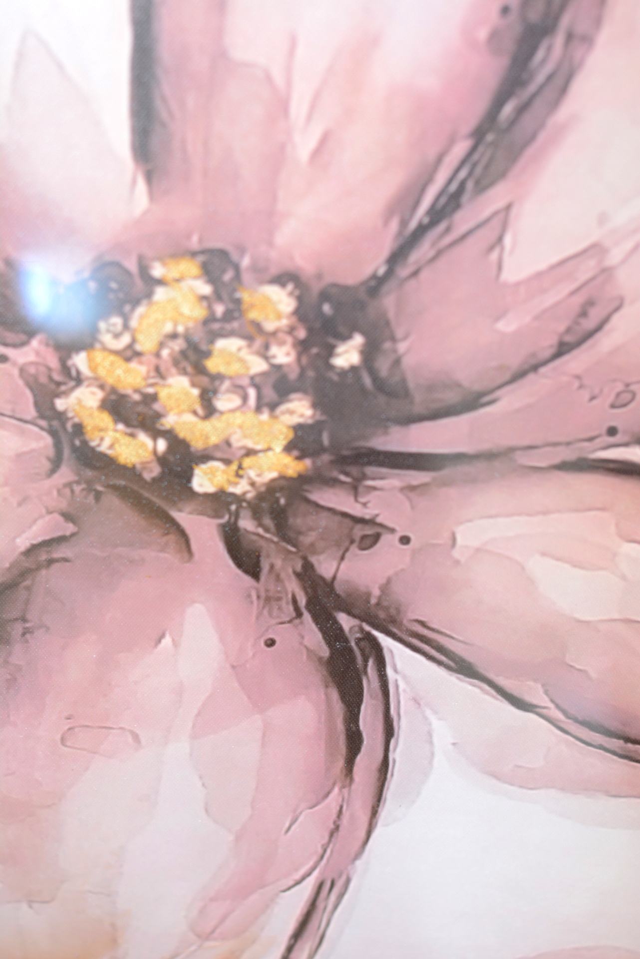 Tela com Tema "Flores Brilhantes" nos Tons Brancos, Dourados e Rosa.